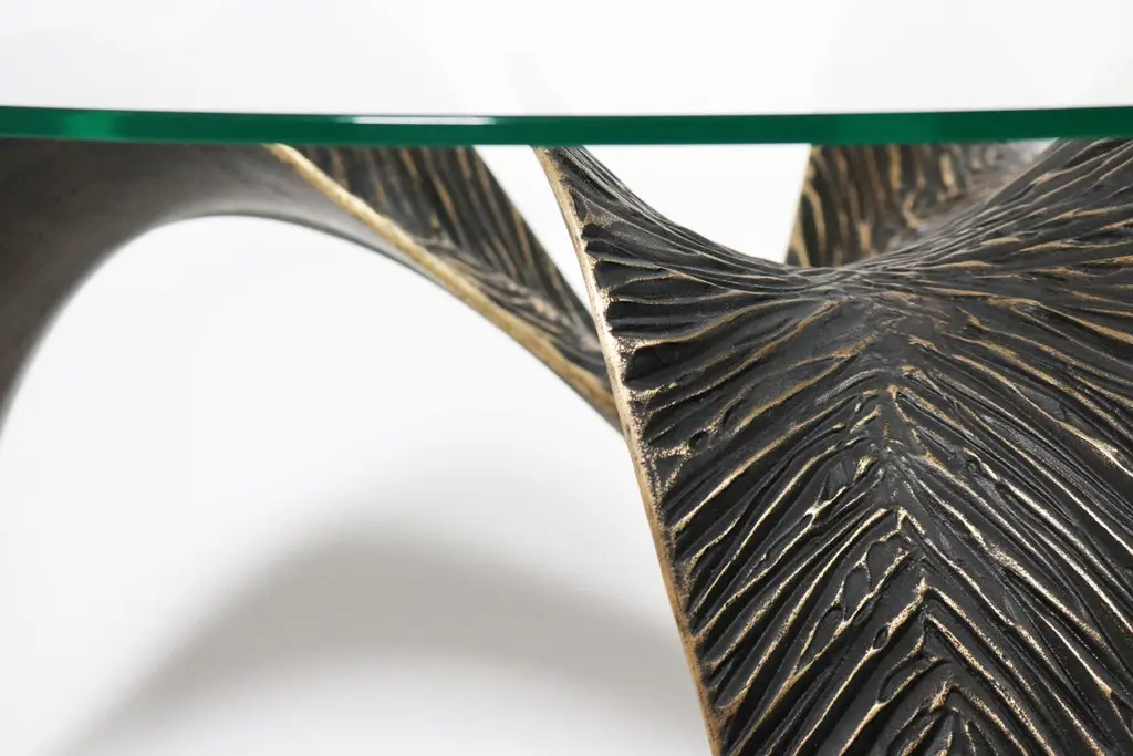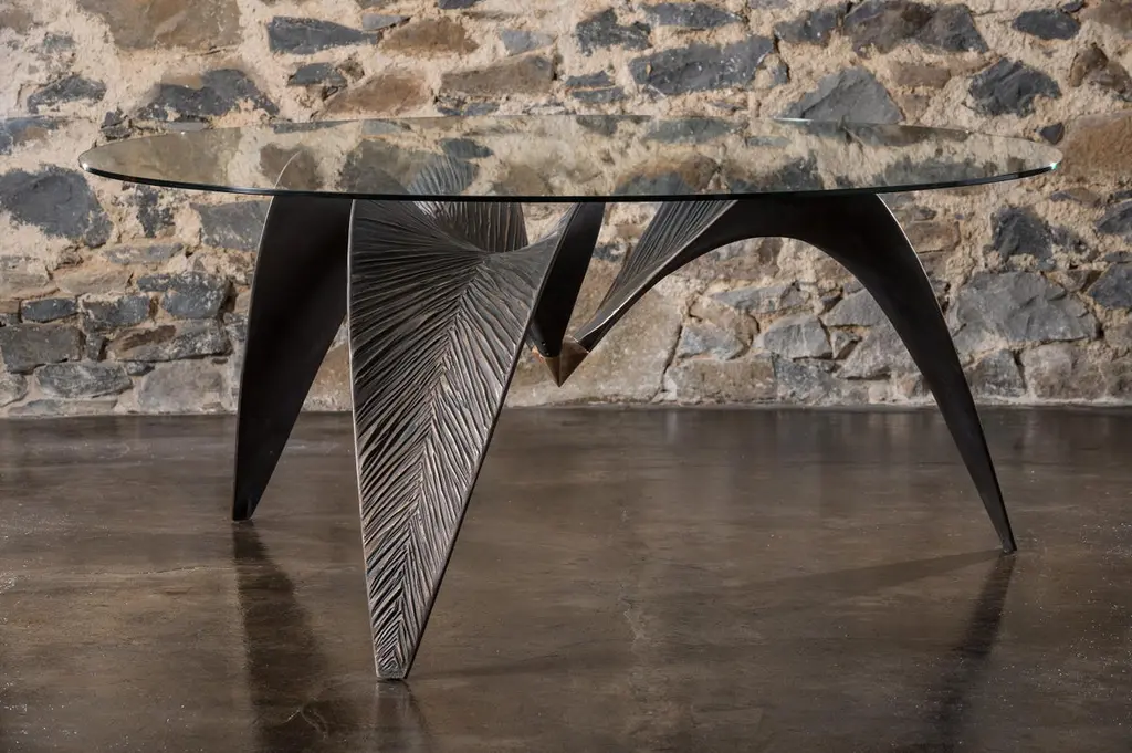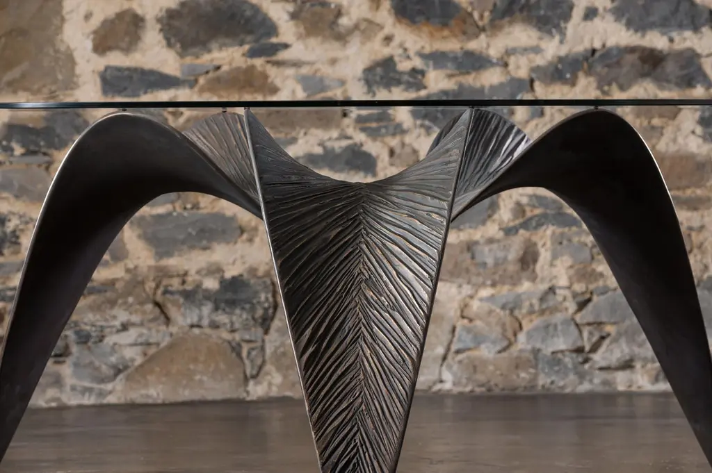 Introducing the Nikau table - an exquisite work of art, created with passion and precision by skilled craftsmen in New Zealand. This table is a true masterpiece that will elevate the ambience of any living room, dining room, or office space.Available in two sizes, the Nikau table is versatile and can cater to any of your needs. Choose the small coffee table size if you want a functional and elegant piece to complement your living room décor, or go for the more significant option to seat up to six people for more formal gatherings.Crafted with the utmost care and precision, the Nikau table is made from cast bronze and is hand cast in New Zealand. This ensures the highest quality and makes each piece unique and unique. It is an investment that you will cherish for years to come, and will undoubtedly become a treasured family heirloom.