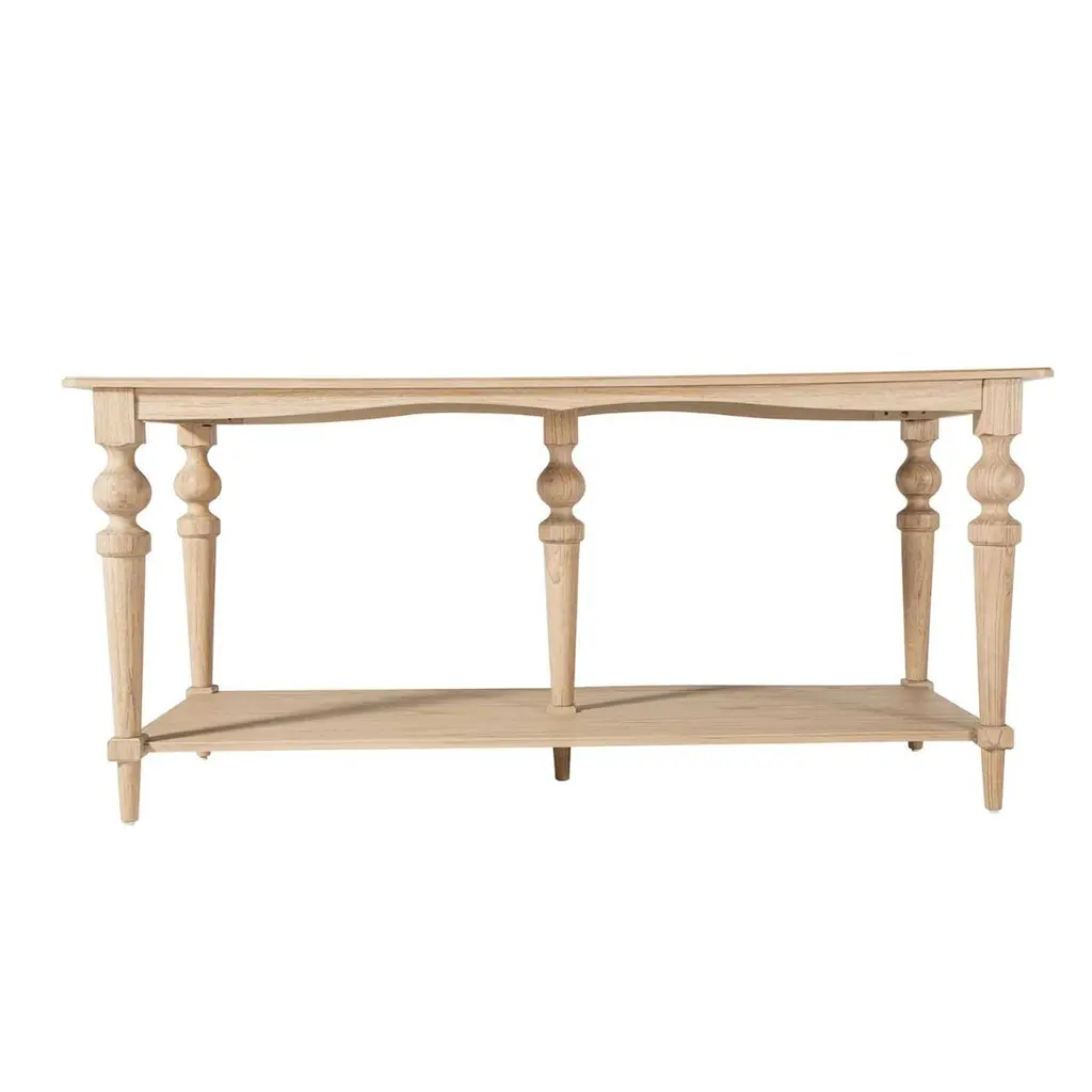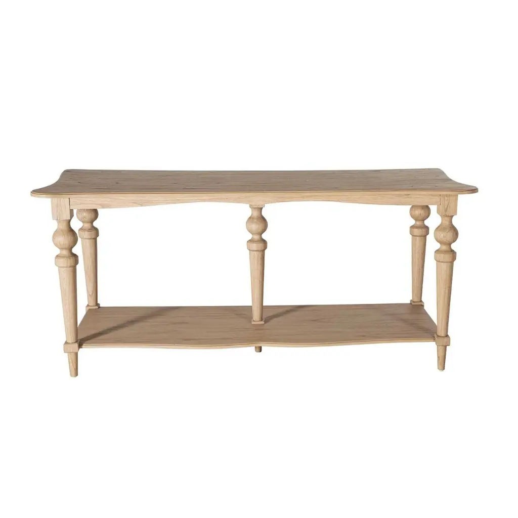 Inspired by an English antique, the Nirvana Console Table has a grand width that belongs in large foyers, dining rooms or behind an equally impressive sofa. The wide open space created beneath is perfect for stowing poufs, baskets and other tall decorative items. The subtle curves and turned legs soften the silhouette, adding a touch of timeless elegance to any space.