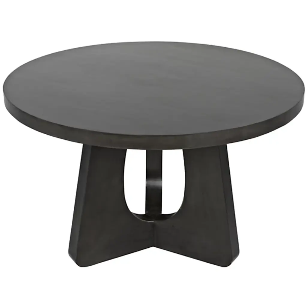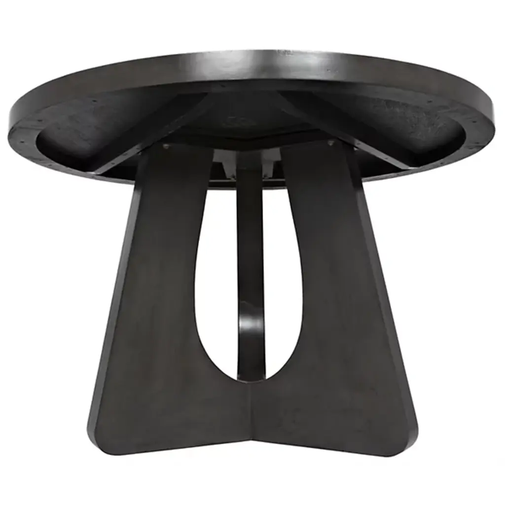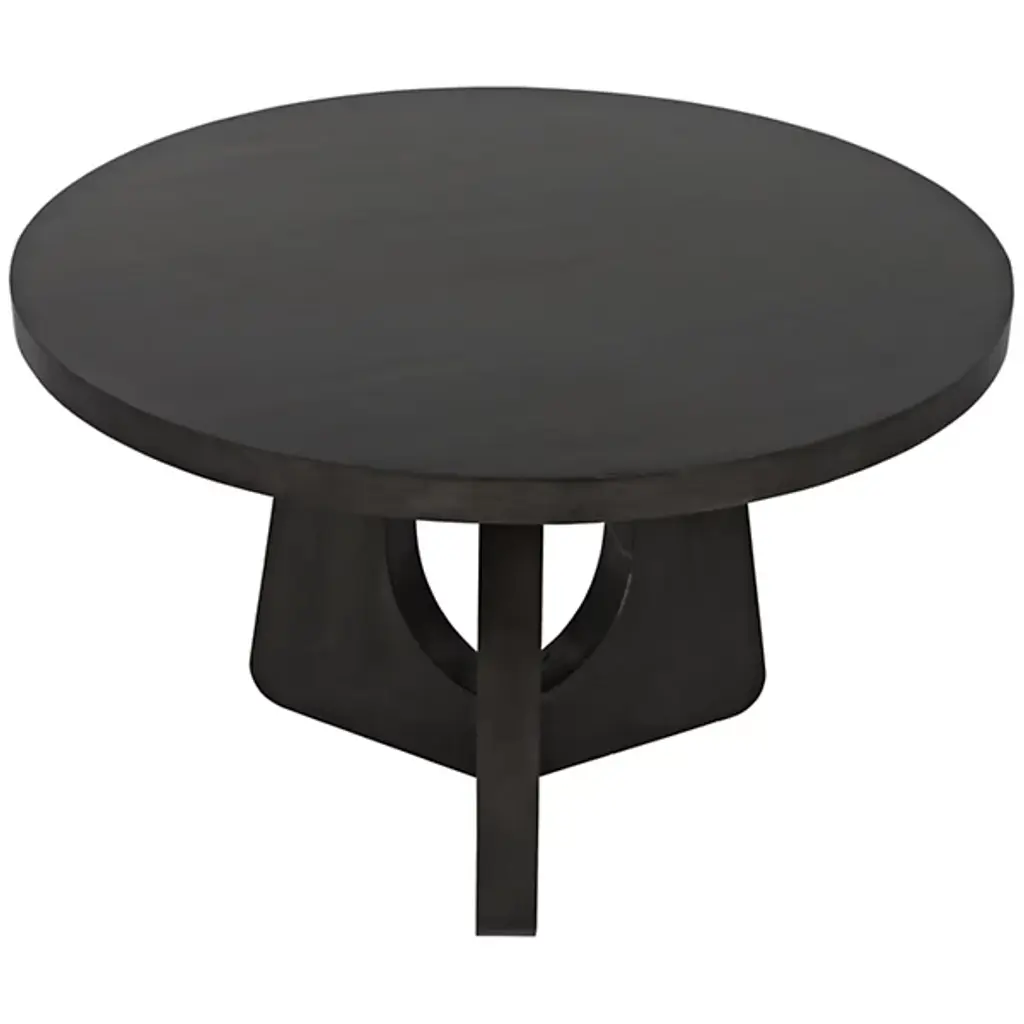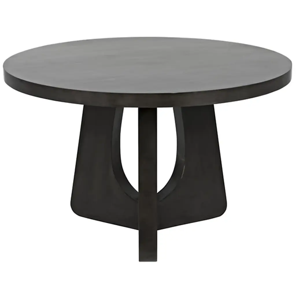 The Nobuko Dining Table from Noir puts the refined warmth of mahogany on full display and elevates contemporary dining. A substantial tripod base provides airy support, its inner curves contrasting with the outer angles and showcasing the round tabletop. Hand-rubbed mahogany finishes the art deco-inspired silhouette with a contemporary handshake. The design combines simplicity and intrigue in enduring rich wood grain, hand-polished and with a sculptural simplicity.