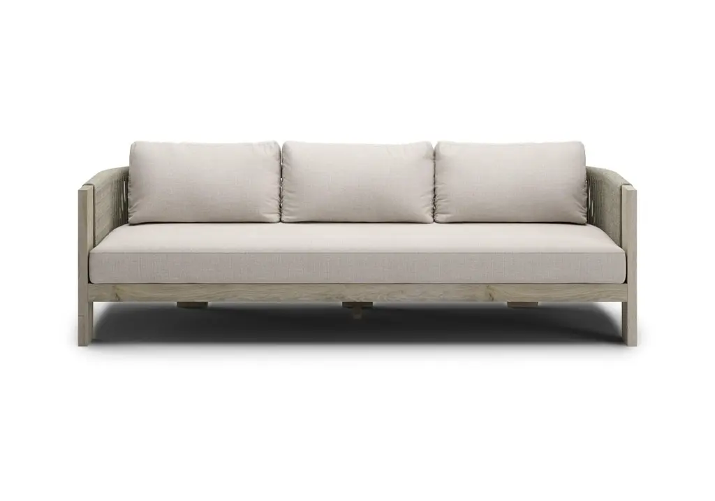 Noche Ralph Seater 3 Sofa by SNOCDimensions: W 232 x D 80 x H 65 cm.Materials: Teak Wood, Acrylic Rope, Sunbrella Fabric. Ralph-ash Collection consists of a lounge set, dining table set, bar trolley, chaise lounge and coffee tables designed with Teak wood and acrylic rope details that gracefully express a unique synthesis of aesthetics, functionality and ergonomics. The Collection, which has turned into an iconic design, provides integrity in the perception of visual flow with framed design details, strong thick lines. It is enriched with cushion details in tones compatible with natural Teak color and offers a new and special interpretation to your outdoor areas. By harmonizing the modern design approach with the new generation of sustainable materials, it recreates the style codes specific to the design decent to which it belongs. Ralph-ash Collection, consisting of lounge set, dining set, chaise longue with all its details; the comfort suitable for human scale and ergonomics in your garden, terrace or winter garden stands out in every part of the collection and offers a unique relaxation experience in all four seasonsSnocSince their foundation in 2004, SNOC’s history has been interwoven with that of international design. Each chapter written with care, each product reflecting its passion. The company understands that a real story exists behind each object and behind that story, a real person desiring something more. Their ever-developing methodology focuses on defining the core of a brand and utilizing those characteristics to help nurture its soul, aiding in forging real connections. This approach , results in their unique “work in progress” style: original, versatile solutions that in their signature blend of sound, vision and design best-suit every environment and situation, arousing a range of emotions on a daily basis as well as standing the test of time.Driven by functional research, an inclusive project and product culture, and deep care for the environment, we exist as the timeless yet present essence of outdoor furniture design elevating private and public space a like with thoughtfully presented, endlessly adaptive creations.