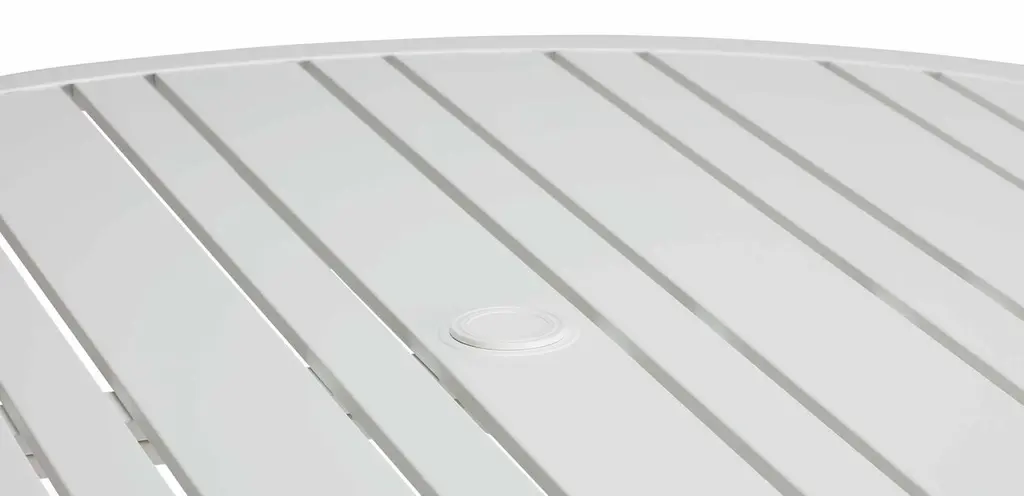 Want to add style to any outdoor living space? Our Nod Hill round aluminum patio table gets the job done, with a powder-coated frame that's as beautiful and easy to care for as it is tough. Do you prefer your patio dining made in the shade? Opt for the base with the built-in umbrella stabilizer.