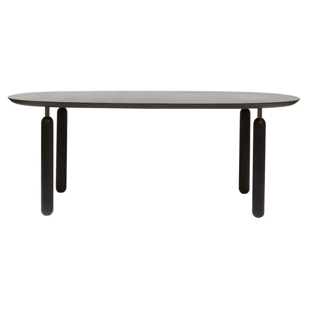 Noir Journal Oval Dining Table, Dark Walnut With Black & Aged Brass Steel Base