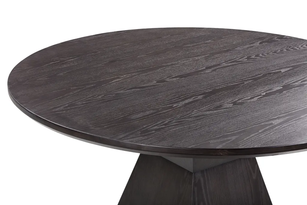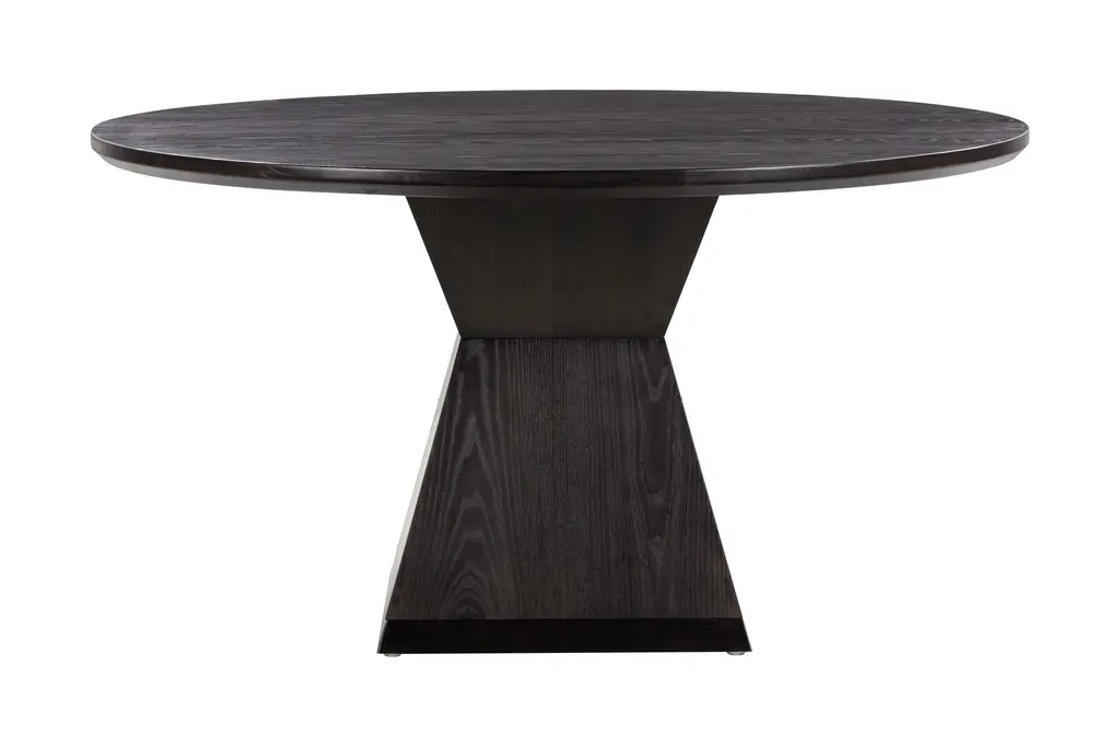 Elevate your dining space with the Nolan Round Dining Table, available in natural and black wood. Its geometrically shaped base serves as a modern masterpiece, seamlessly merging functionality with contemporary elegance. As the centerpiece of your dining space, this table transforms gatherings into intimate affairs, fostering shared moments. With precision craftsmanship and a timeless design, the Nolan Round Dining Table turns ordinary meals into extraordinary experiences.