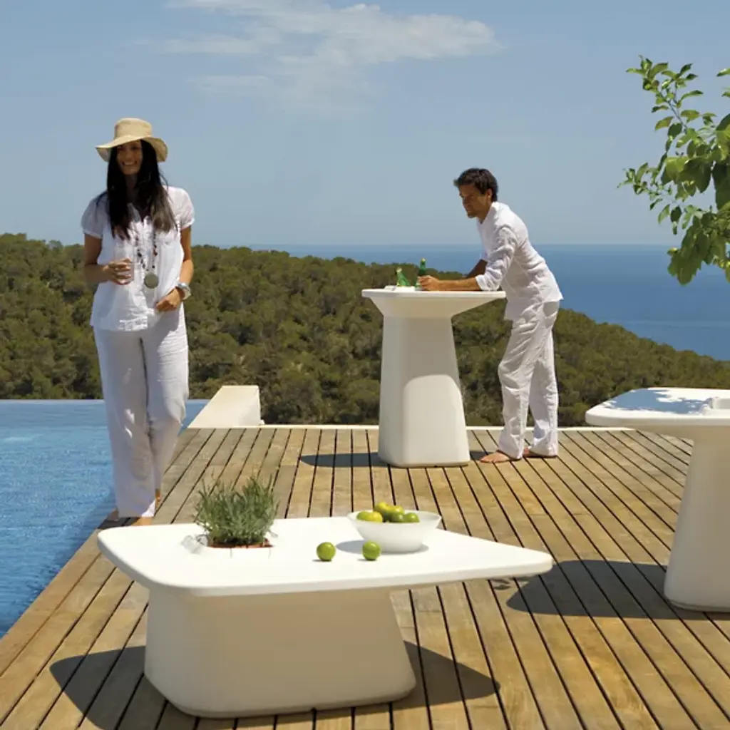 There's a lot to like about the Noma High Table Matte Finish, which embodies originality and versatility in its seemingly modest form. The sophisticated design of this two-person outdoor bar table features a multifunctional compartment for cooling wine bottles, keeping condiments in place, showcasing your favorite plant or anything that comes to mind. In addition, if opting to use the compartment as a planter, select the self-watering system for hassle-free plant care. The 100% recyclable polyethylene construction makes this table weather-resistant and robust enough for any type of outside climate condition. The space-saving Noma High Table Matte Finish is sure to jazz up entertaining and dining spaces, indoors and out.