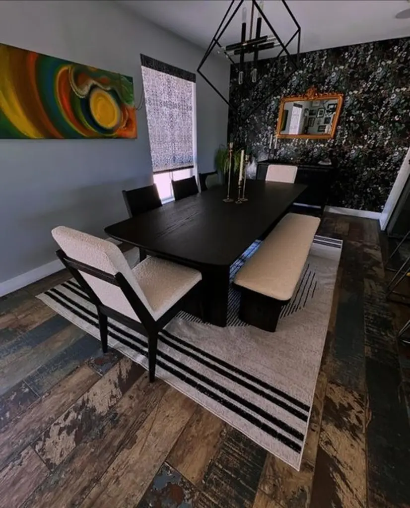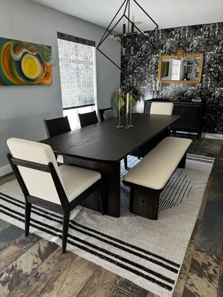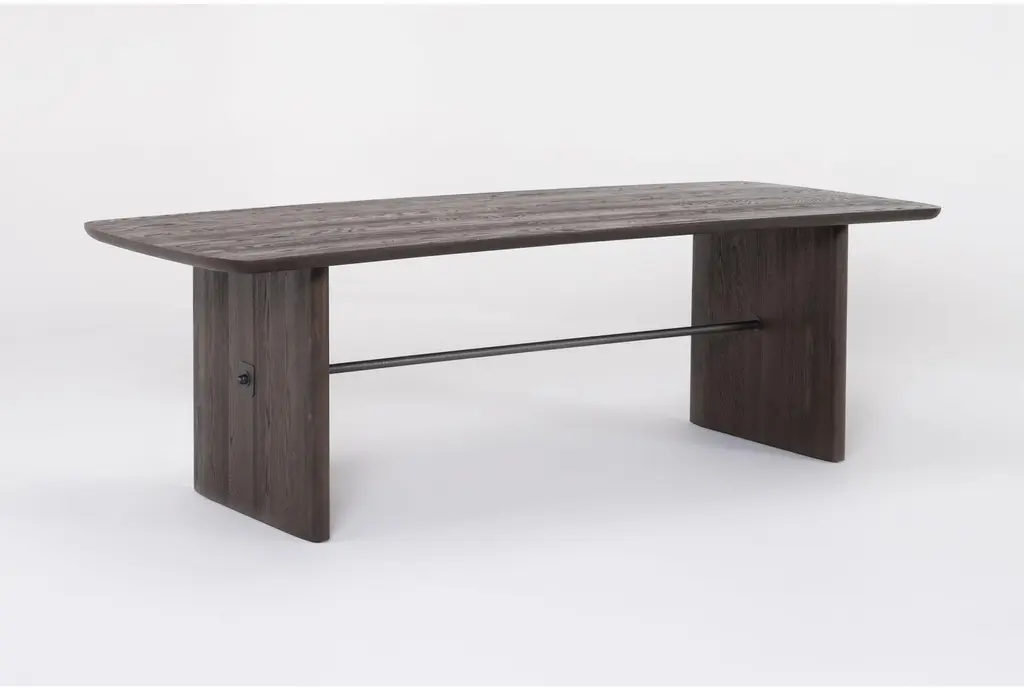 Bring a touch of modern sophistication to your dining space with the Nomad Brown Oak Rectangular 98" Dining Table with Metal Stretcher. This impressive dining table effortlessly combines style and functionality, making it the perfect centerpiece for family gatherings and dinner parties. The rich brown oak finish and sturdy metal stretcher give it a contemporary edge that complements any dining room or kitchen decor.