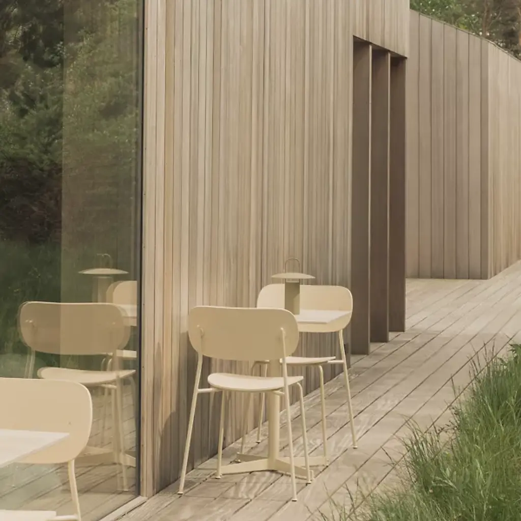 The Nook Rectangular Dining Table with Star Base by Audo Copenhagen uses balanced proportions to create a grounded presence, pairing resilience with a refined silhouette. Designed by Kroeyer-Saetter-Lassen, its powder-coated steel base features a distinctive four-star design to support a central column, lending stability and definition. Each table is made in Latvia and can be used both indoors and outdoors, depending on the chosen top. Its direct design emphasizes strong joinery and honest construction, creating a quiet, confident gathering place designed to endure daily use.