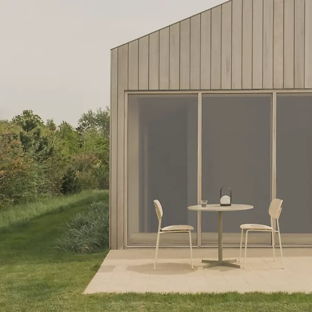The Nook Round Dining Table with Star Base from Audo Copenhagen contrasts a quietly expressive structure with balanced, grounded proportions. Designed by Kroeyer-Saetter-Lassen, it rests on a sturdy powder-coated steel column with a four-star base that provides both stability and clarity of form. Each table is made in Latvia, able to adapt to both indoor and outdoor settings, depending on the tabletop material, and pairs durability with a refined presence. The straightforward form highlights the strength of its joinery and its honest construction, creating an enduring gathering space that can weather everyday use with understated confidence.
