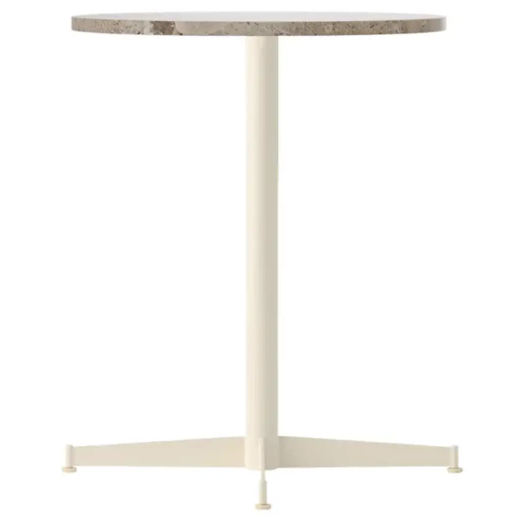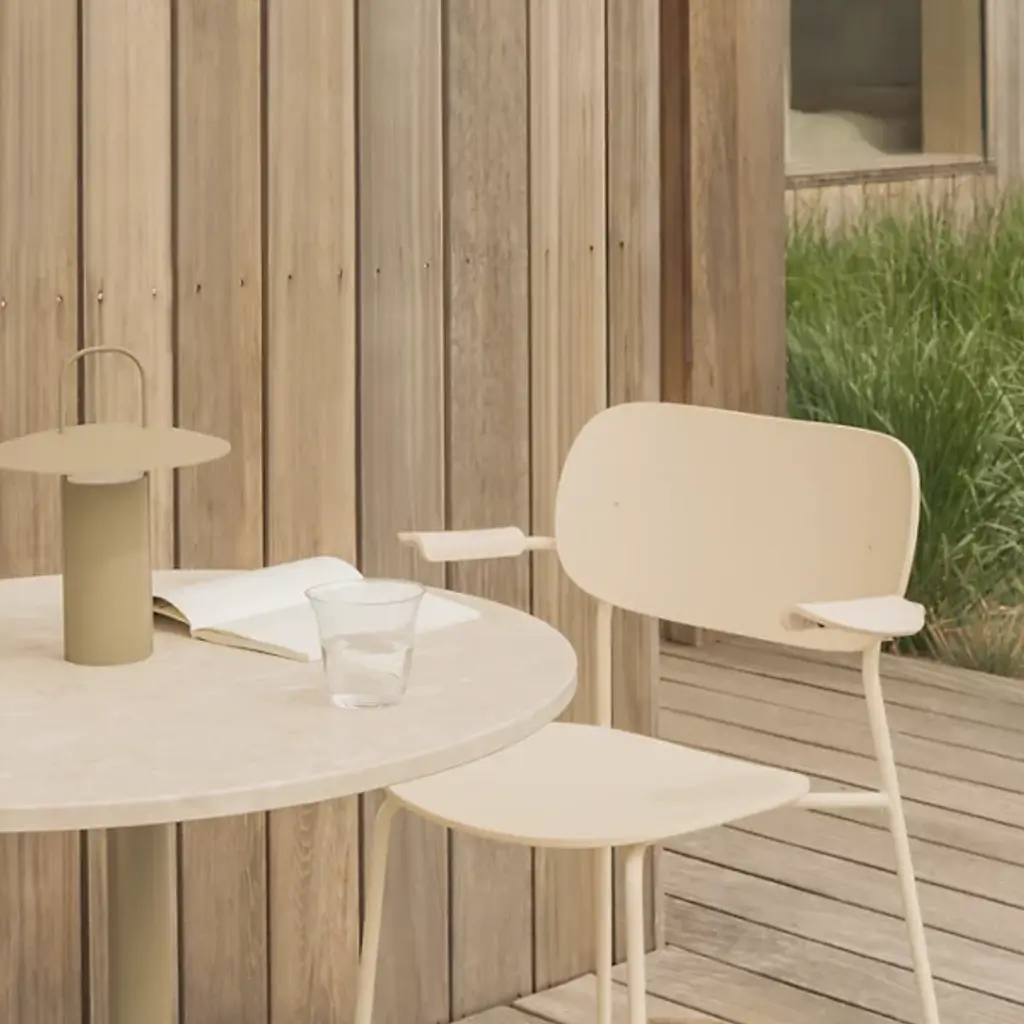 The Nook Round Dining Table with Star Base from Audo Copenhagen contrasts a quietly expressive structure with balanced, grounded proportions. Designed by Kroeyer-Saetter-Lassen, it rests on a sturdy powder-coated steel column with a four-star base that provides both stability and clarity of form. Each table is made in Latvia, able to adapt to both indoor and outdoor settings, depending on the tabletop material, and pairs durability with a refined presence. The straightforward form highlights the strength of its joinery and its honest construction, creating an enduring gathering space that can weather everyday use with understated confidence.