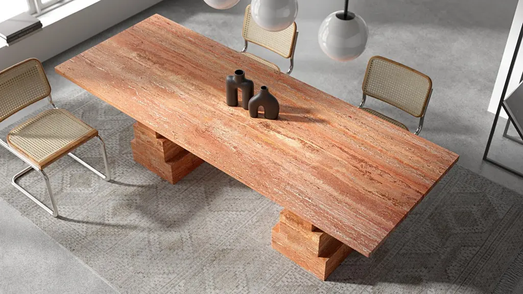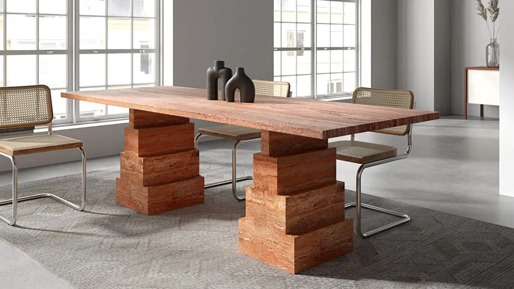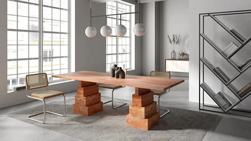 Nordst Niko Dining Table, Italian Red Travertine Marble, Danish Modern Design