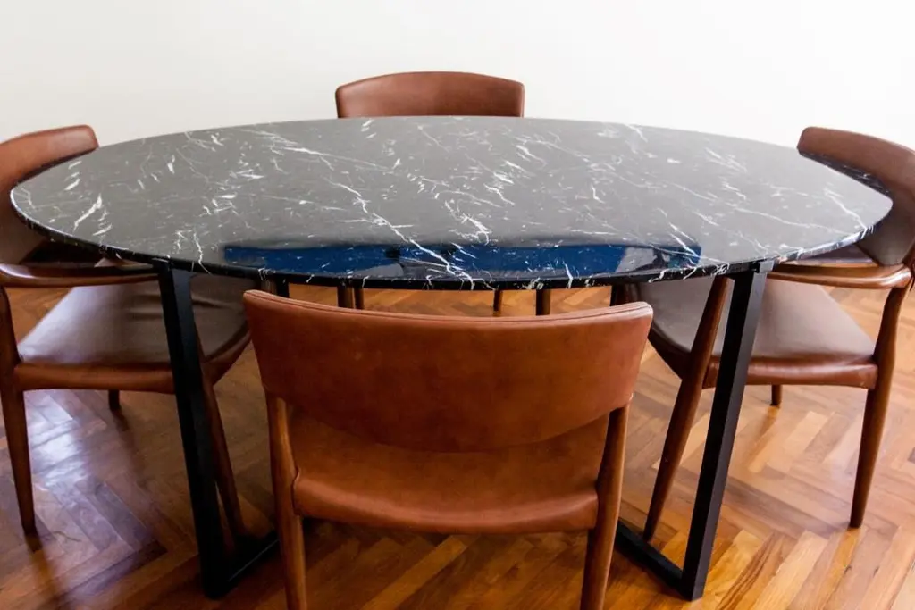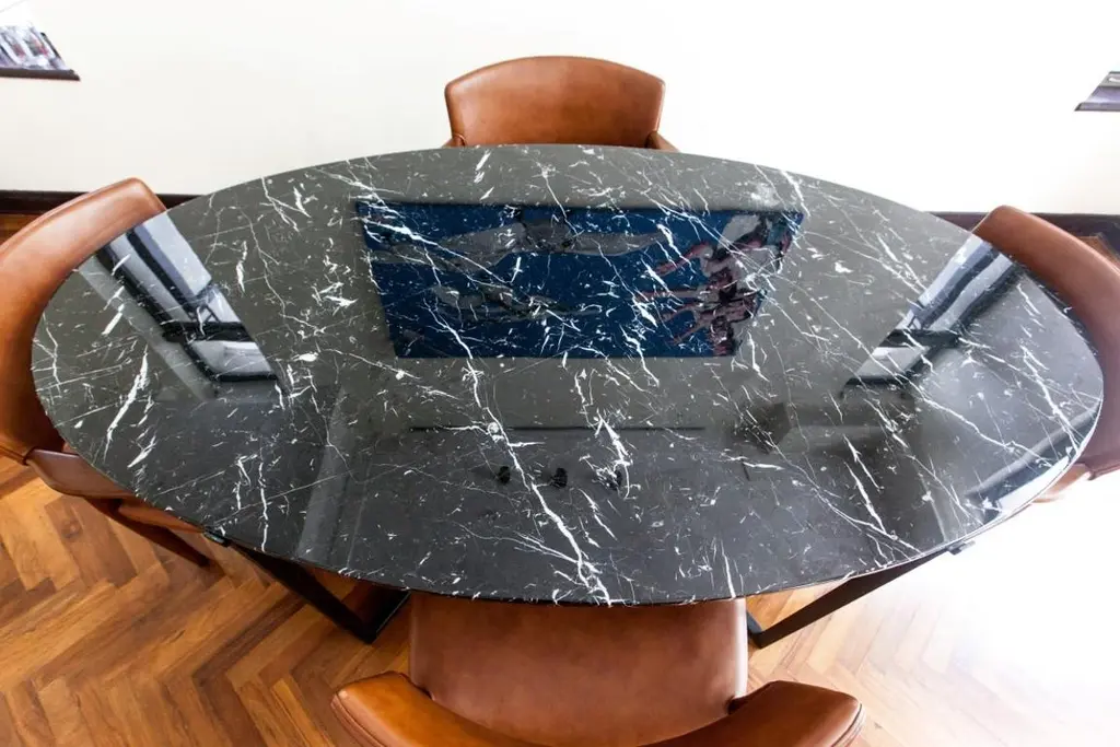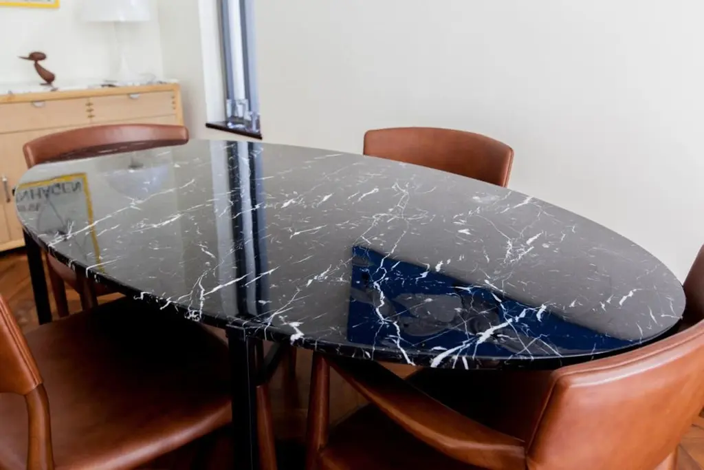 Nordst Teddy Dining Table, Italian Black Eagle Marble, Danish Modern Design, New