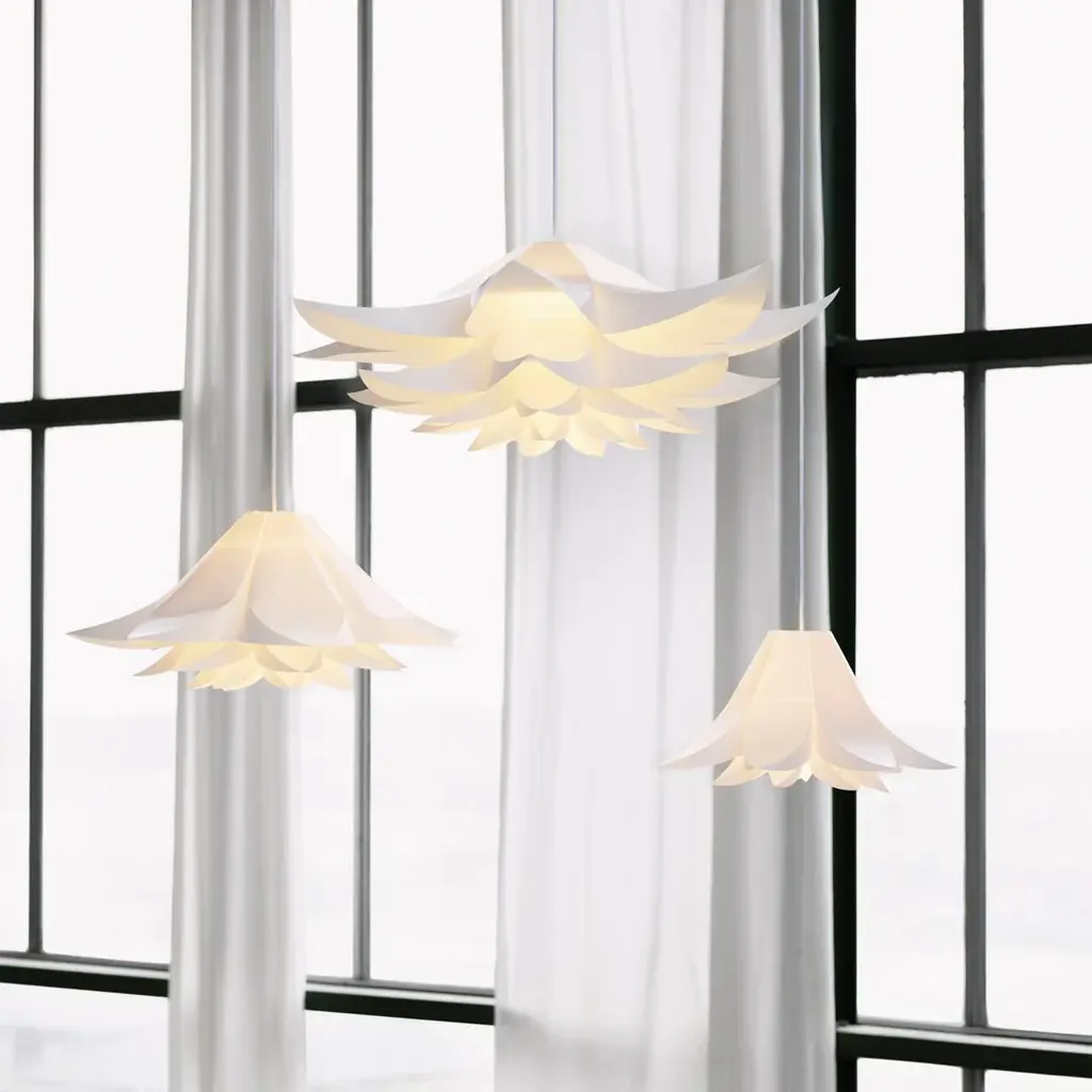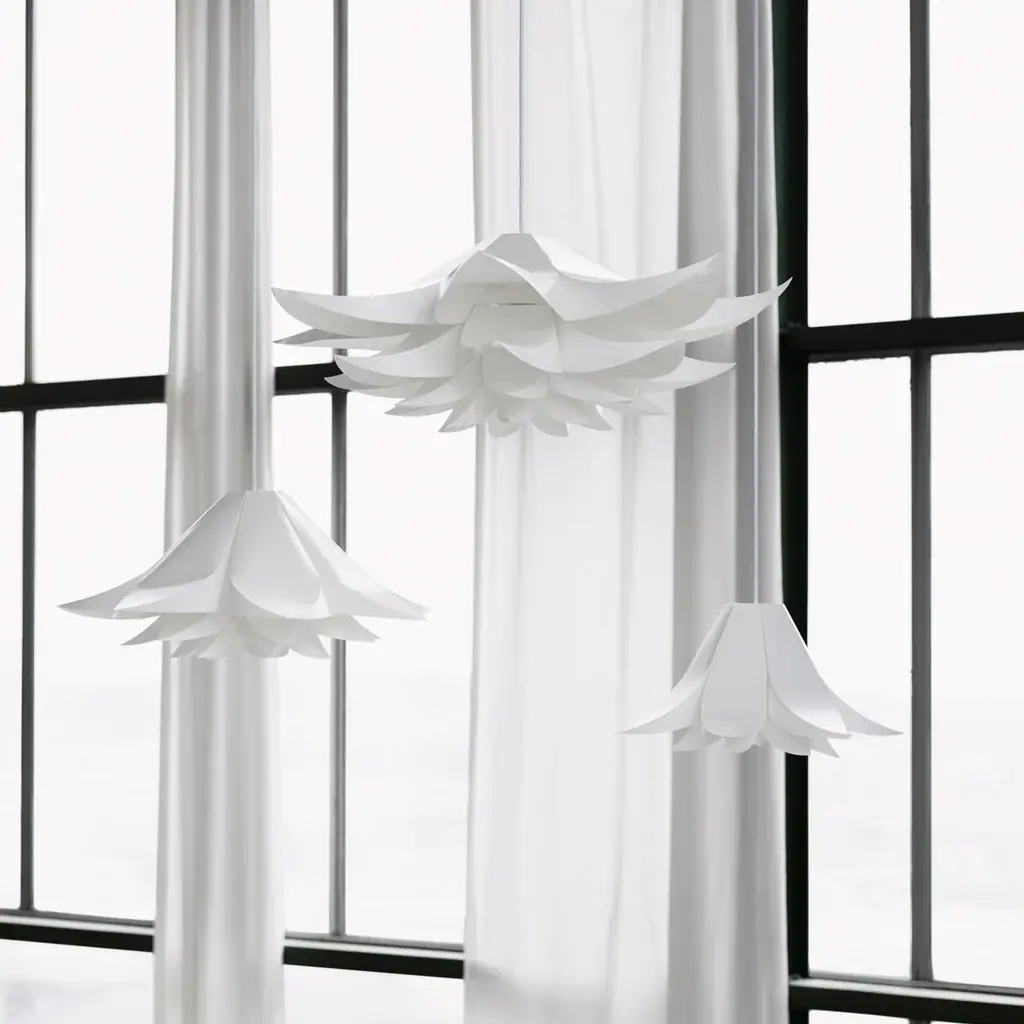 Norm 06 is a sculptural lamp shade with its own expression. It is easy to assemble without the need for any tools or glue. Norm 06 is a good place to start your lamp-puzzle adventure. The lamp distributes a soft, surrounding light that works well in most rooms. Hang it over the dining room table, in the entrance hall or use it in the bedroom. Norm 06 can be cleaned with a duster or by using the shower head in the shower. The lamp shade is made of a special, non flammable plastic material. Socket and cord not included. Please contact us for more information. Assembly required.