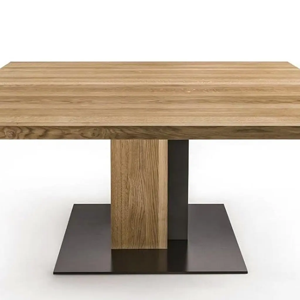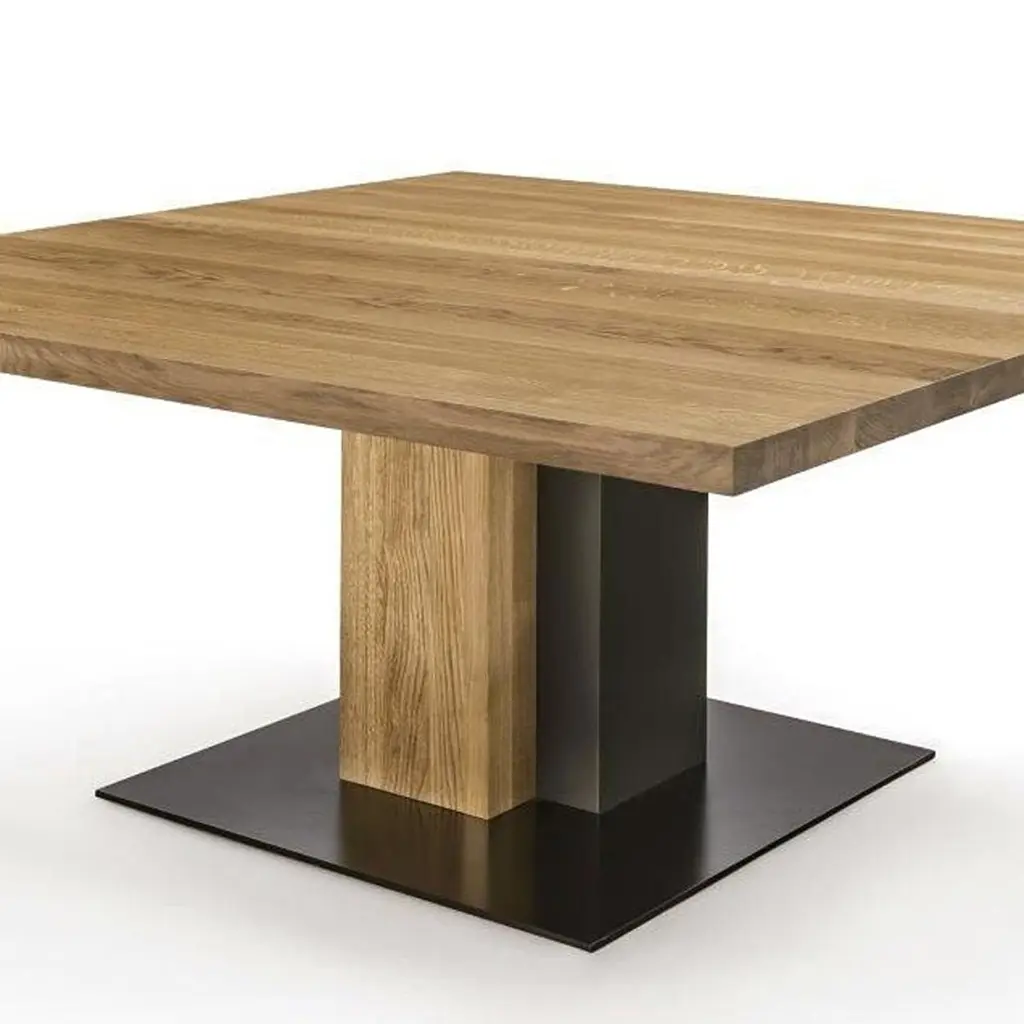 Oak And Iron Square Dining Table In Solid Oak Wood