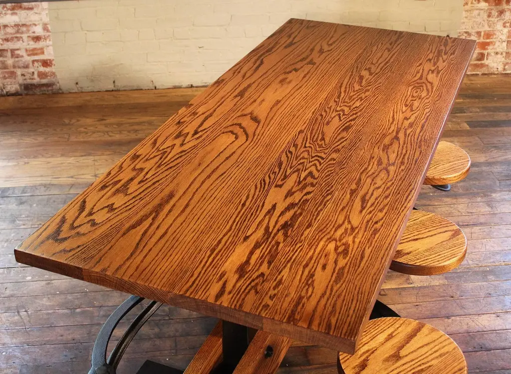 Oak Cafe Style Dining Table With Attached Swing Out Seats