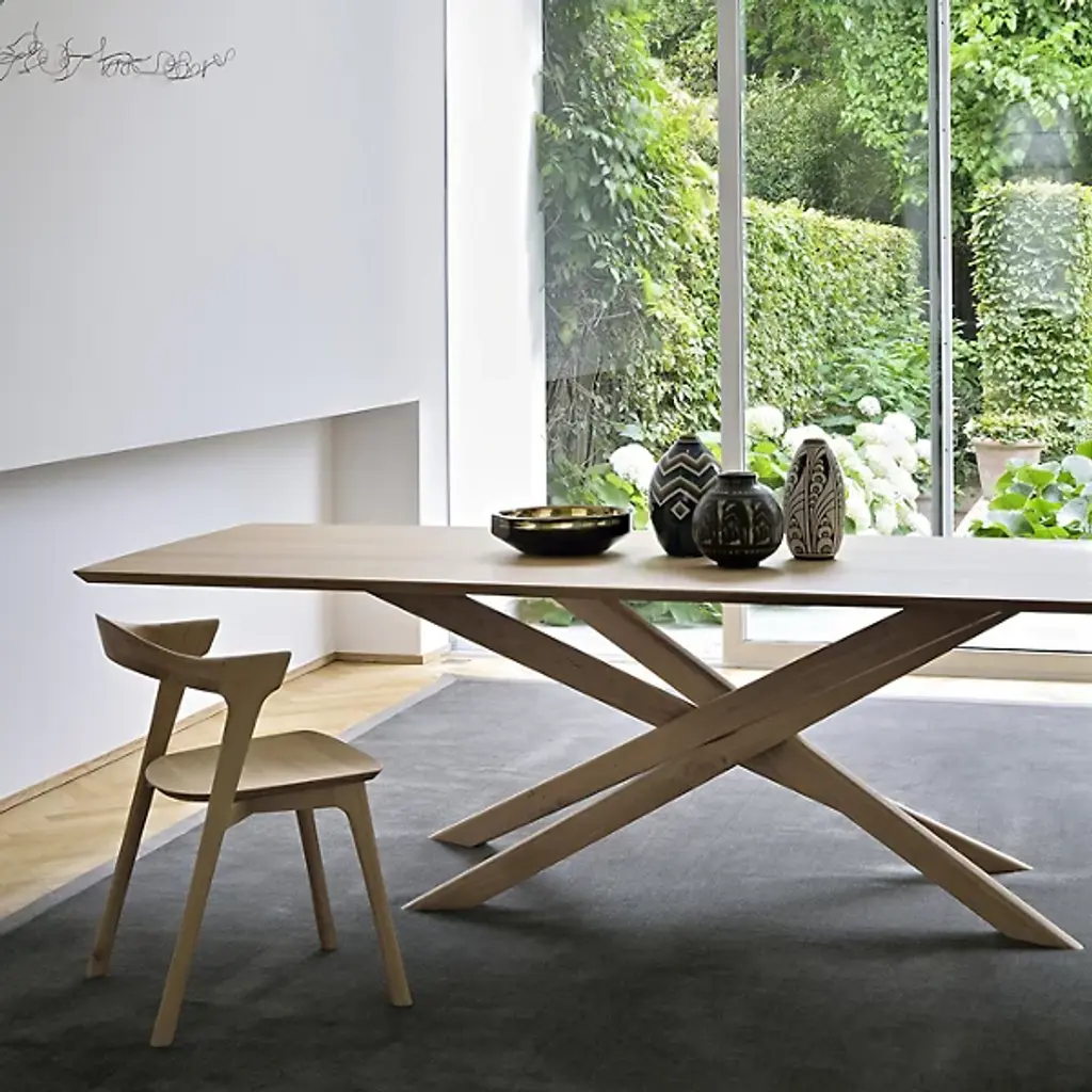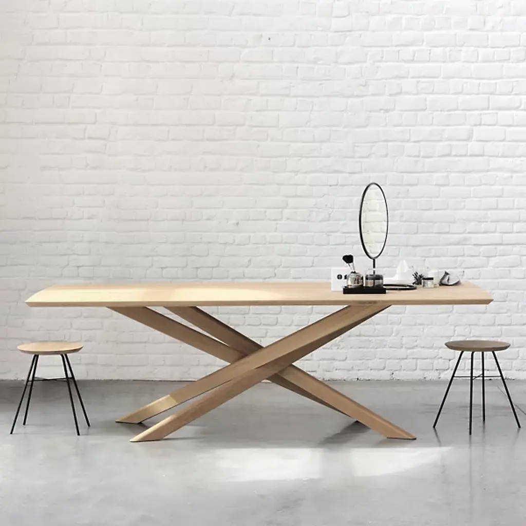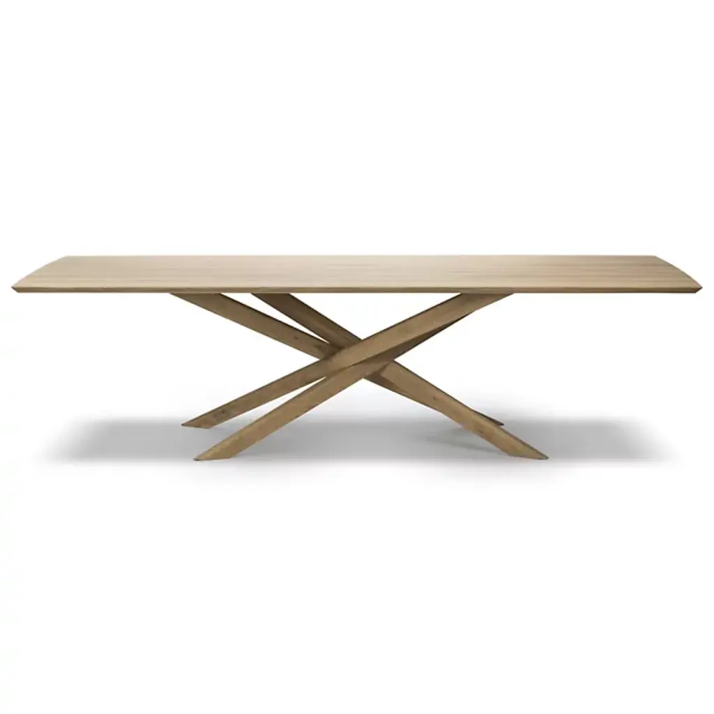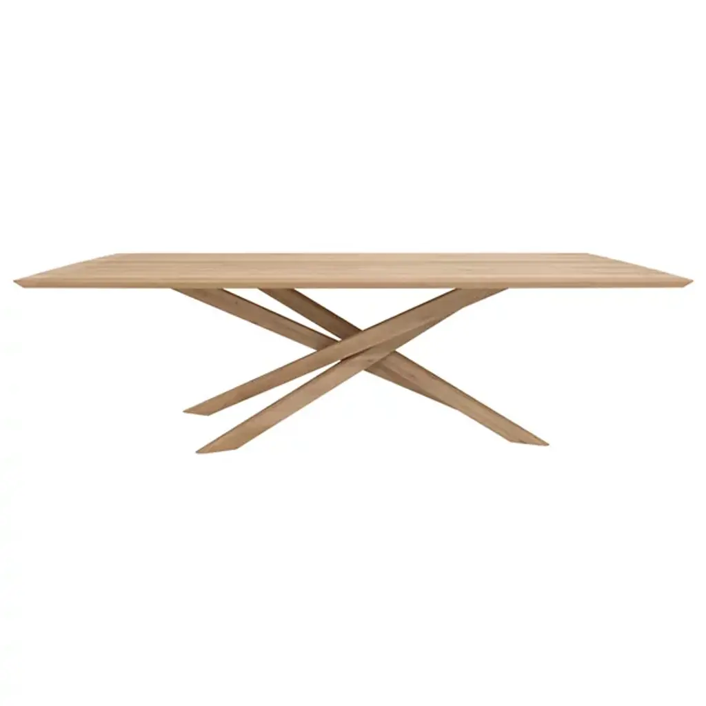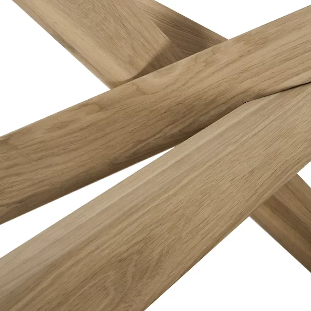The Oak Mikado dining table form is visually captivating. Intricate legwork that interlocks with each other creating a mystifying allure. Crafted of solid oak, this perfectly stable piece is the crowning centerpiece in any room. This chic table comes in a range of sizes.