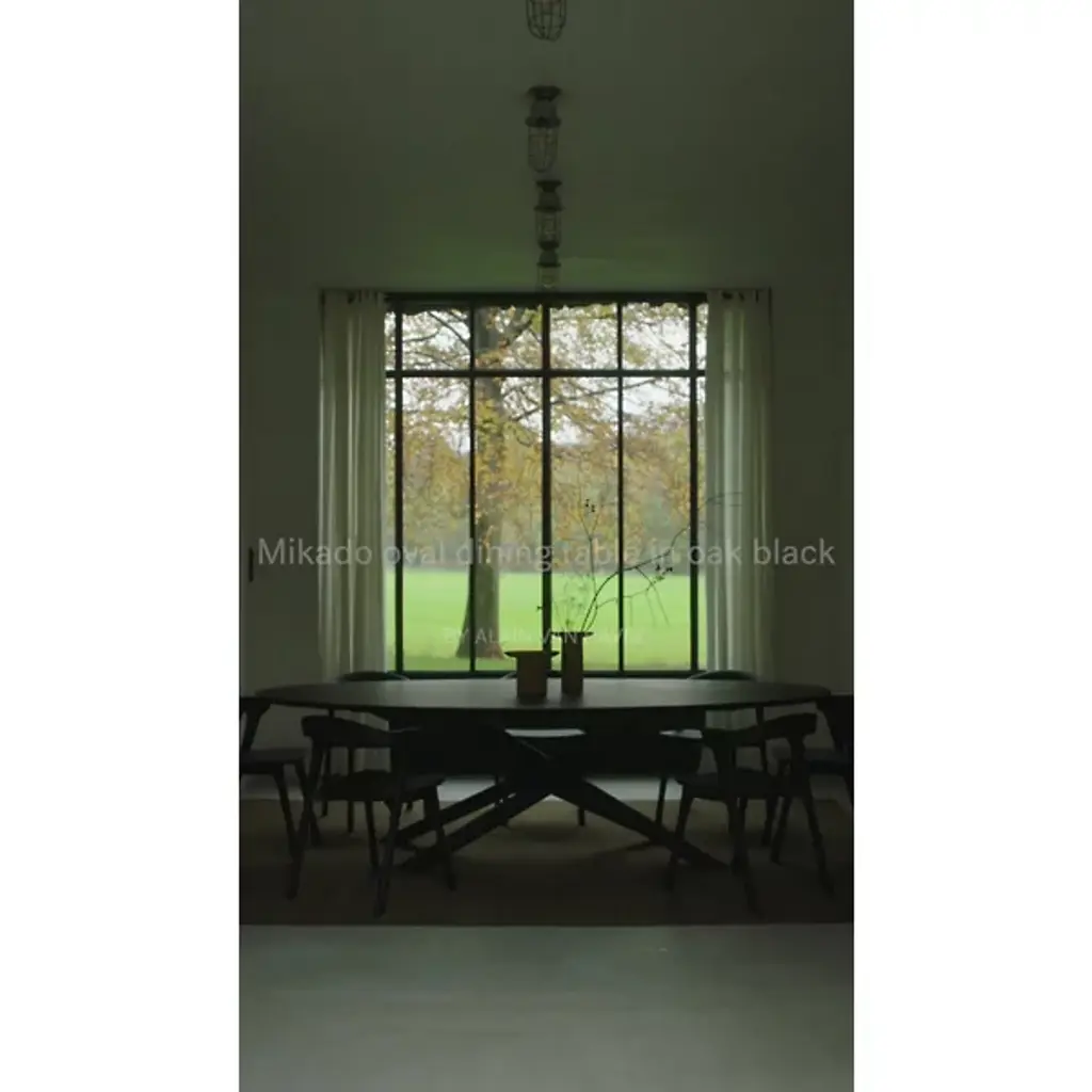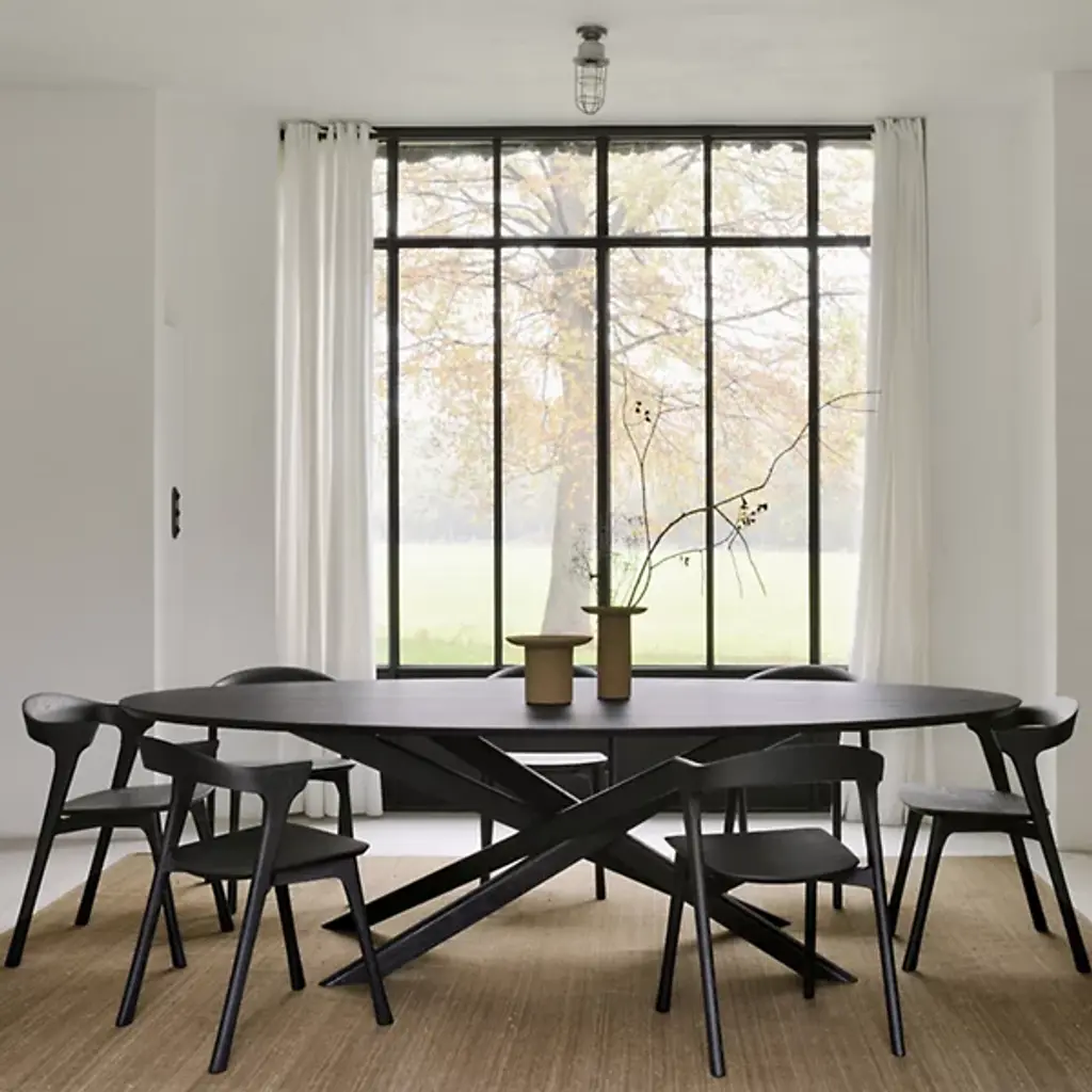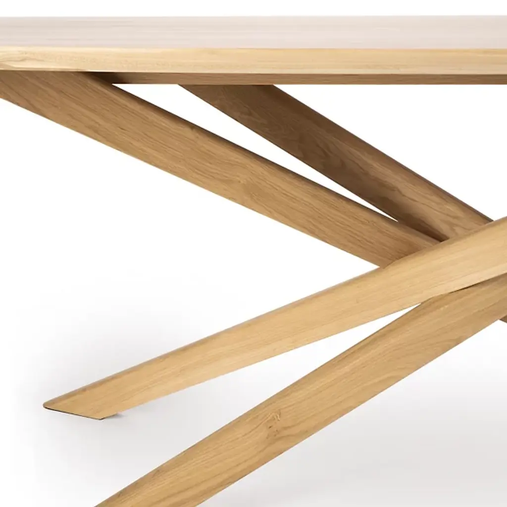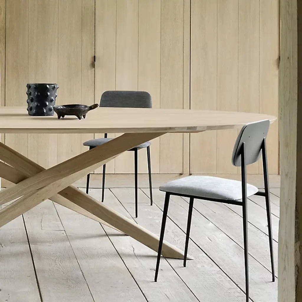 Make meals and gatherings a more intimate and unforgettable experience with the remarkable design of the Oak Mikado Oval Dining Table from Ethnicraft. An enduring creation of solid oak wood by Alain van Havre made in Serbia, the sculptural lines of its interlocking wood legs create an intriguing visual puzzle. An oval top provides for closer encounters than a disc shape, naturally drawing people closer to face each other and interact more easily.