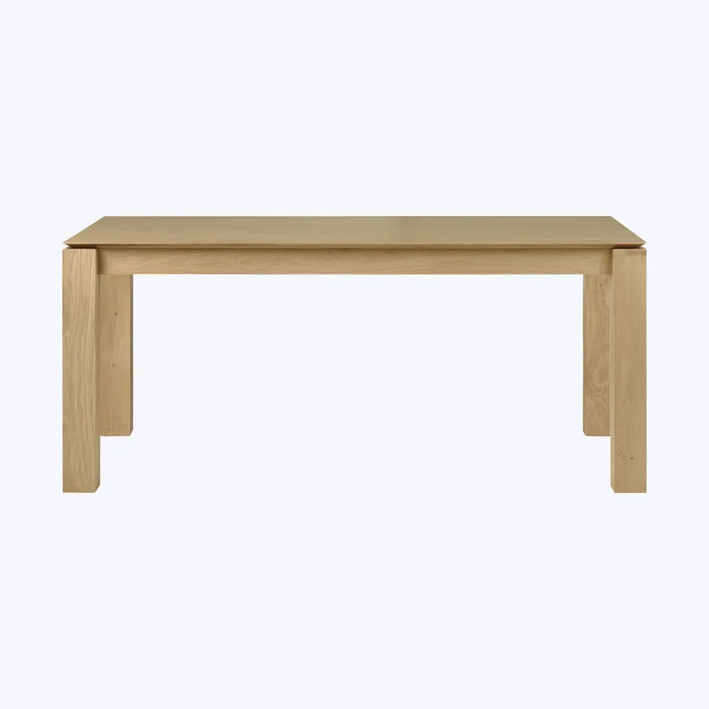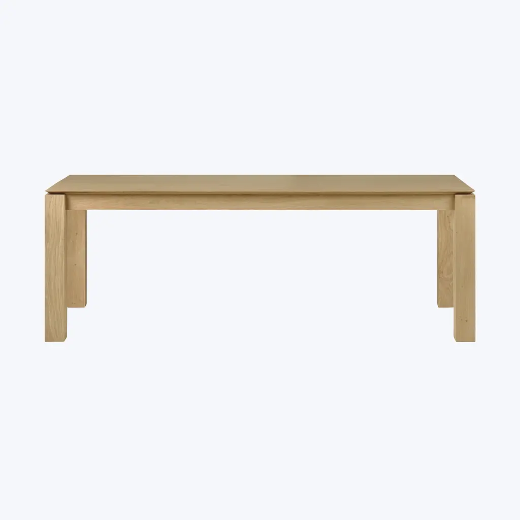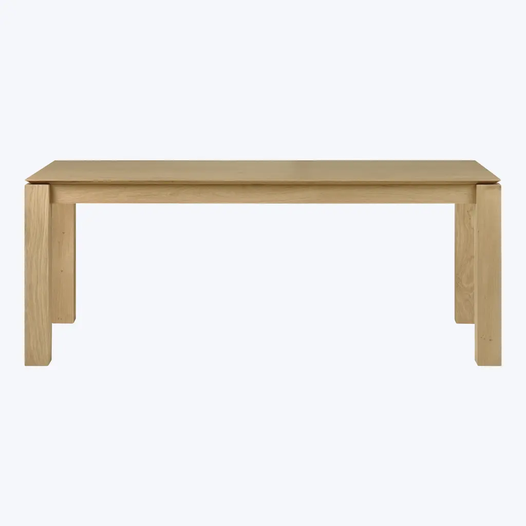 The Ethnicraft Oak Slice Dining Table is a beautiful blend of simplicity and sophistication. Made from solid oiled oak, this table features subtle corner details that add a touch of playful elegance to its functional design. Offered in multiple sizes, it provides generous space for gatherings while maintaining a clean, minimalist aesthetic. The natural oak finish, treated with a durable hard wax oil, enhances the table's rich grain and texture, ensuring it remains both stunning and long-lasting. This piece combines strength and style, making it a perfect addition to any modern dining space. Crafted in Serbia, the Oak Slice Dining Table is designed to offer timeless appeal, effortlessly elevating your home with its understated yet striking charm. Whether for casual meals or special occasions, this table provides both beauty and functionality.