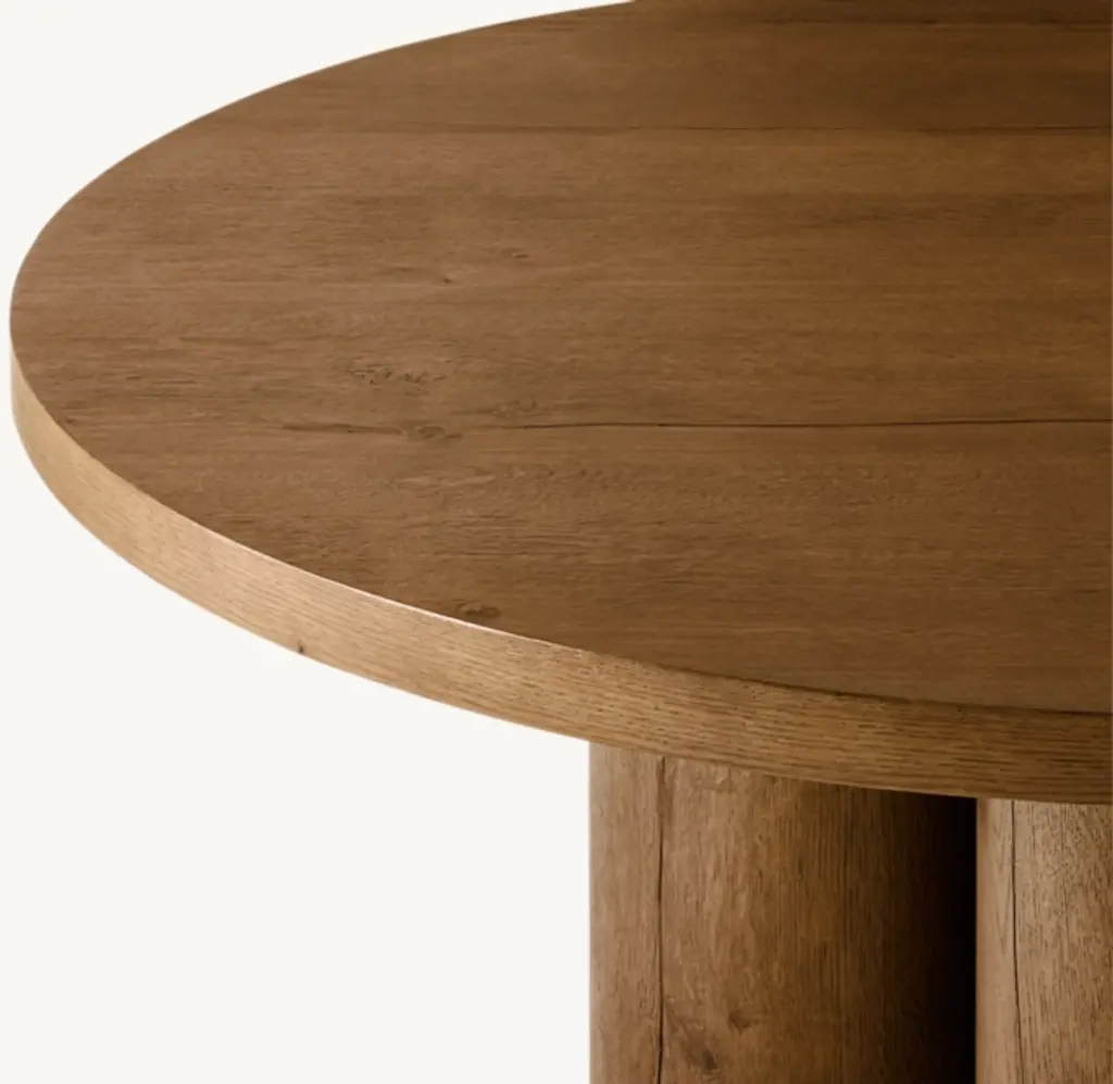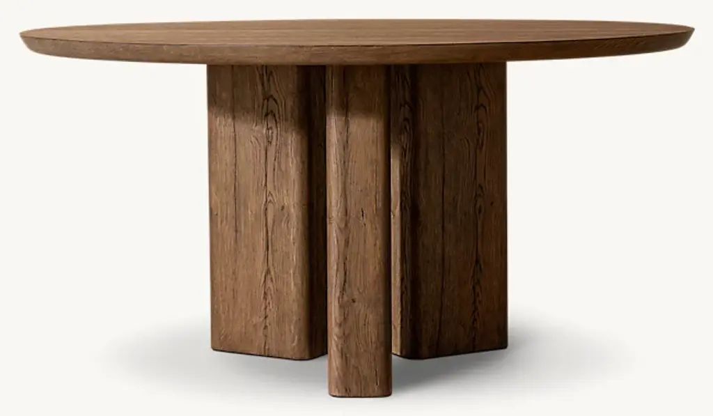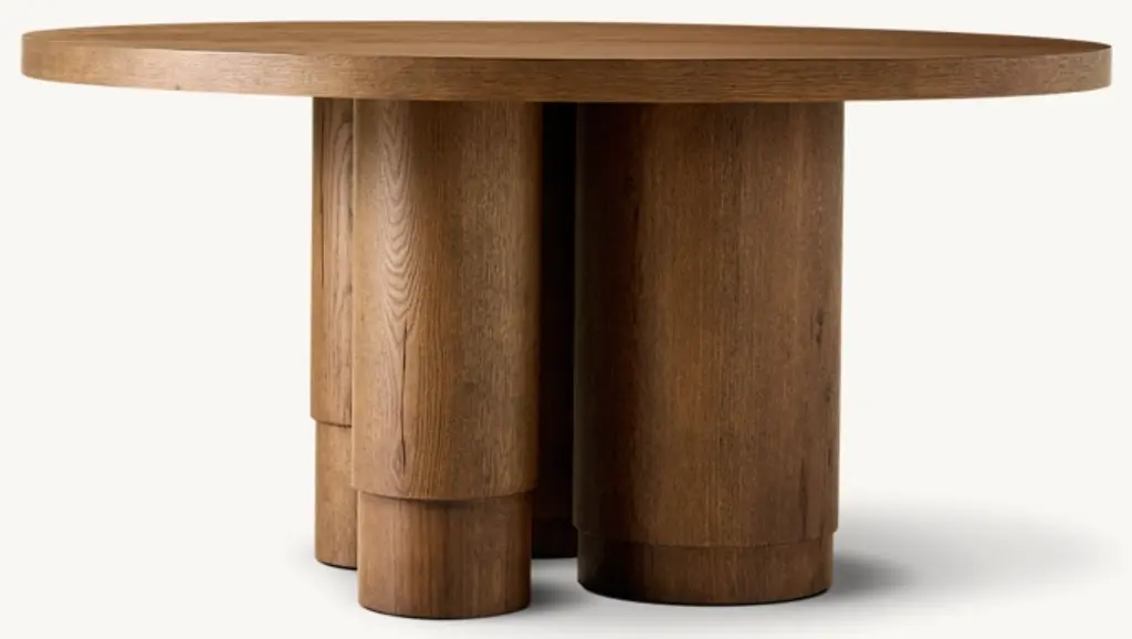 Handcrafted of American white oak with a distinctive knotted finish, the Tropez collection was inspired by a vintage table discovered in St. Tropez, France. The substantial, richly grained tabletop rests on asymmetric columns, each varying in dimension and stepped detail.SHOP THE ENTIRE COLLECTION