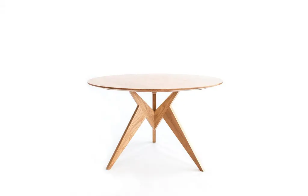 Oak Vieni dining table by Rosanna CeravoloDimensions: W 120 x D 120 x H 75 cmMaterials: 30mm solid american oak, polyurethane spray finish.Also available in different dimensions and materials.Inspired by Italian modernist design of the 1950s, the Vieni Table is at once mysterious and seductive. This product is functional and robust as a table, alluring and enduring as a feature object. Constructed of solid American oak, the form driven, sculptural design of the frame permits a range of seating options.Rosanna Ceravolo is a Melbourne based architect whose multi disciplinary studio focuses on delivering a full and considered design response.Rosanna’s studio creates architecture, products, and spaces which aim to elevate the human experience.Her architectural work is collaborative, contextually sensitive, client specific and considered at both an urban and human scale with the aim of creating places for people. Her design approach focuses principally on how a space can be inhabited to ensure maximum enjoyment, considering connectivity, materiality, texture, light, and scale. As a natural progression, her work maintains a refined and detailed interior focus.These gentle transitions between architecture, interior design and product design reveal an underlying principle that no detail is too small. Rosanna’s furniture and product work is a natural extension of her design process. The work is highly influenced by inimitable beacons of modernist design and it is characterised by form, simplicity, composition and texture. Each piece is handmade to order by quality local fabricators with whom collaboration is an essential and integral part of the process.Rosanna believes passionately that Good Design has an inherent and unquantifiable value.
