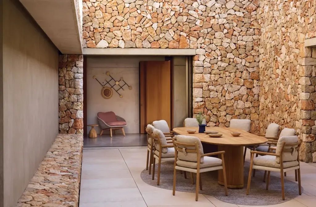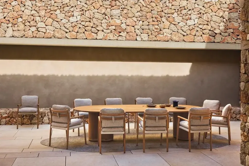 The Ogado Organic Dining Table by Manutti blends natural elegance with timeless design. Designed by Brent De Meulenaere, it features a sculpted teak base and a spacious tabletop (310x135 cm) for up to 12 guests. Weather-resistant with optional cover, it’s perfect for stylish outdoor dining.Inspired by the fusion of nature’s elegance and timeless design, the Ogado Collection invites you to enjoy the beauty of organic shapes and inviting textures. Crafted with high-end precision and careful attention to detail, each piece reflects the graceful lines found in nature, from the flowing tabletops in ceramic or teak to the unique, sculpted wooden bases inspired by natural forms. Find tranquility and balance in the blend of teak wood and ceramic, creating a calm, soothing atmosphere in any outdoor space.