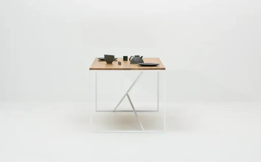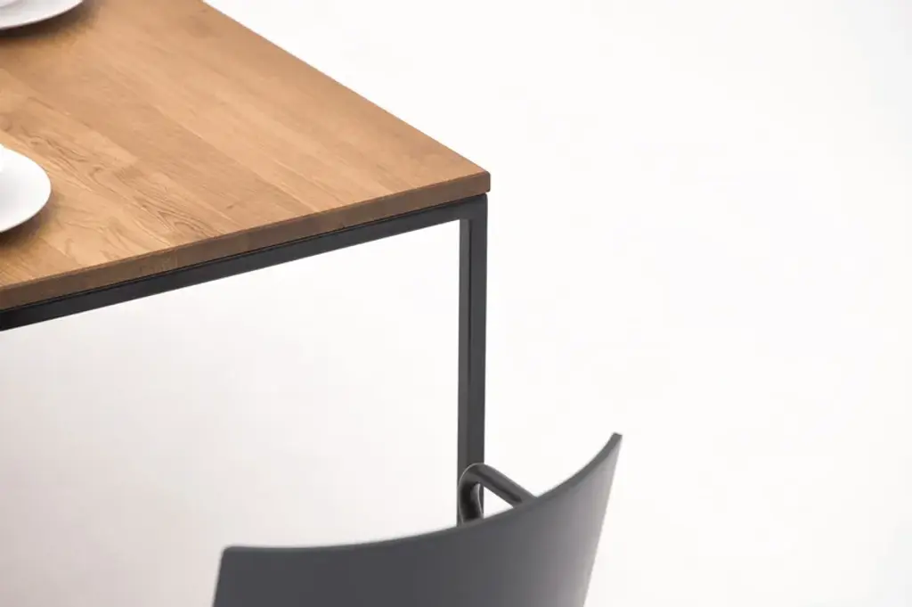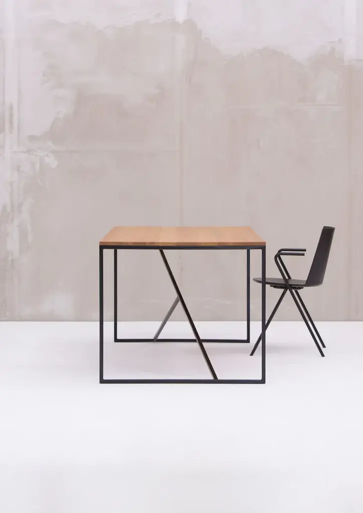 We tend to perceive symmetrical things as beautiful. One challenge therefore is to create something beautiful that does not follow the principle of symmetry. We've done everything possible to combine asymmetry with our unique, custom-made pieces. The result of these efforts is OIA; MAZANLI's answer to clumsy dining tables that just "fill" a room.OIA was named for its beauty after a small village on the Greek island of Santorini. As a true eye-catcher, it will immediately cast a spell over you and your guests. The interplay of the metal structure of the table forms the Greek letter "Lambda".The sense of weightlessness is made possible by the use of thin but highly robust square tubes (2 cm x 2 cm) made from high quality German Kruppstahl. The steel used is untreated and develops a unique patina over time, depending on the surrounding climate. The RAK dining table is also available in white or black powdered steel, however.OIA means highest standard and true contemporary minimalist Berlin design.The tabletop is 2 cm thick and is made of high-quality oak wood (up to 13 slats). The tabletop is then oiled by hand.The metal base is completely welded and will be delivered in one piece.Our masterpiece: In addition to the "standard version" of the table, we also offer a special version called "OIA HIGH". This version comes with a 3 cm thick oak wood tabletop (up to 4 slats), through which runs a highly polished epoxy resin element. Due to the extreme level of polishing, the epoxy inlay looks like glass. This allows to see the wood structure / growth rings on both sides in great detail. It is reminiscent of a canyon with thunderous masses of water. The effect is breath taking and a true masterpiece made by our master joiner.Important note: The untreated steel version is indeed untreated. This means it will have scratches, signs of the welding (including "rainbow effect") will clearly be visible and the steel will develop a patina over time (i.e. the steel will show signs of rust). This is all intended and part of the design of the product. If the aforementioned effects are not desirable, please choose the black or white powder coated versions of this product. These are protected and do not develop a patina.
