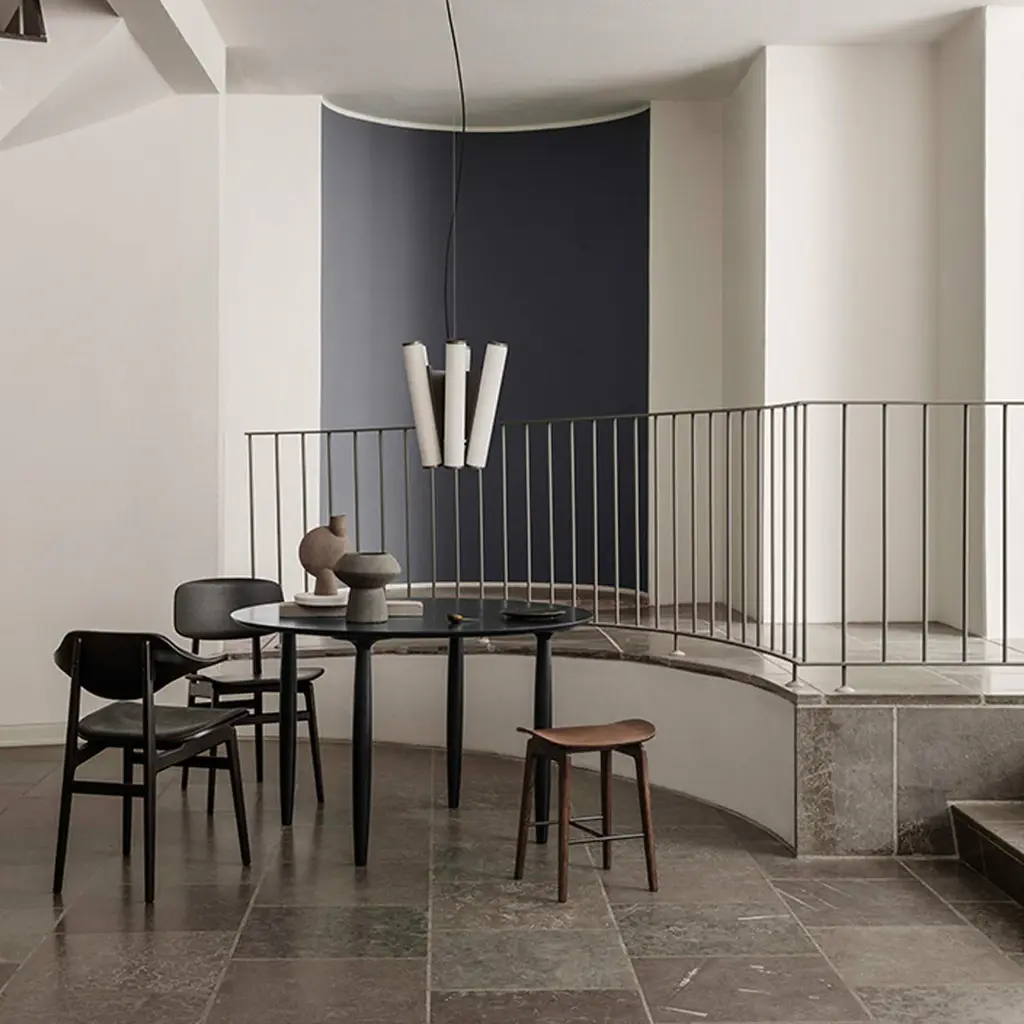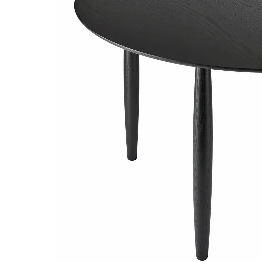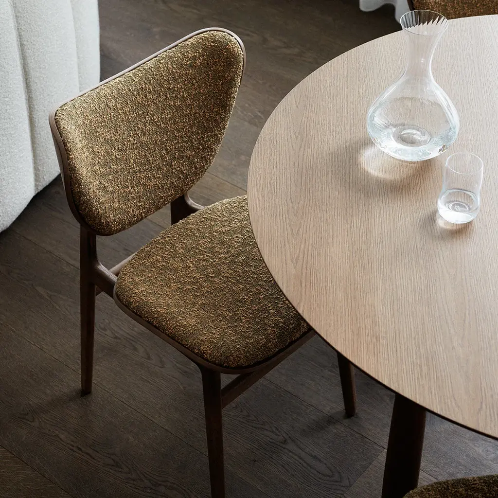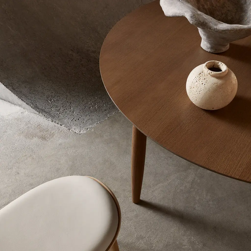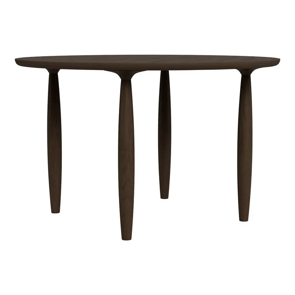 Oku is an interpretation of the Japanese word for oak ‘Ōku'. Oku refers to the essence of the design - oak. "Through experiments with the balance between lightness and heaviness, making it paper-thin when seen from one angle and solid from others, we've emphasised the material in a simple design." The Oku table top is produced in oak veneer with round edges, adding a refined detail to the large surface. The legs of turned oak timber sections are positioned sporadically to create the illusion of a floating tabletop while adding sculptural detail to the table. Oku comes in both rectangular and circular shapes. Available in several sizes, which makes it a well fit for every room.
