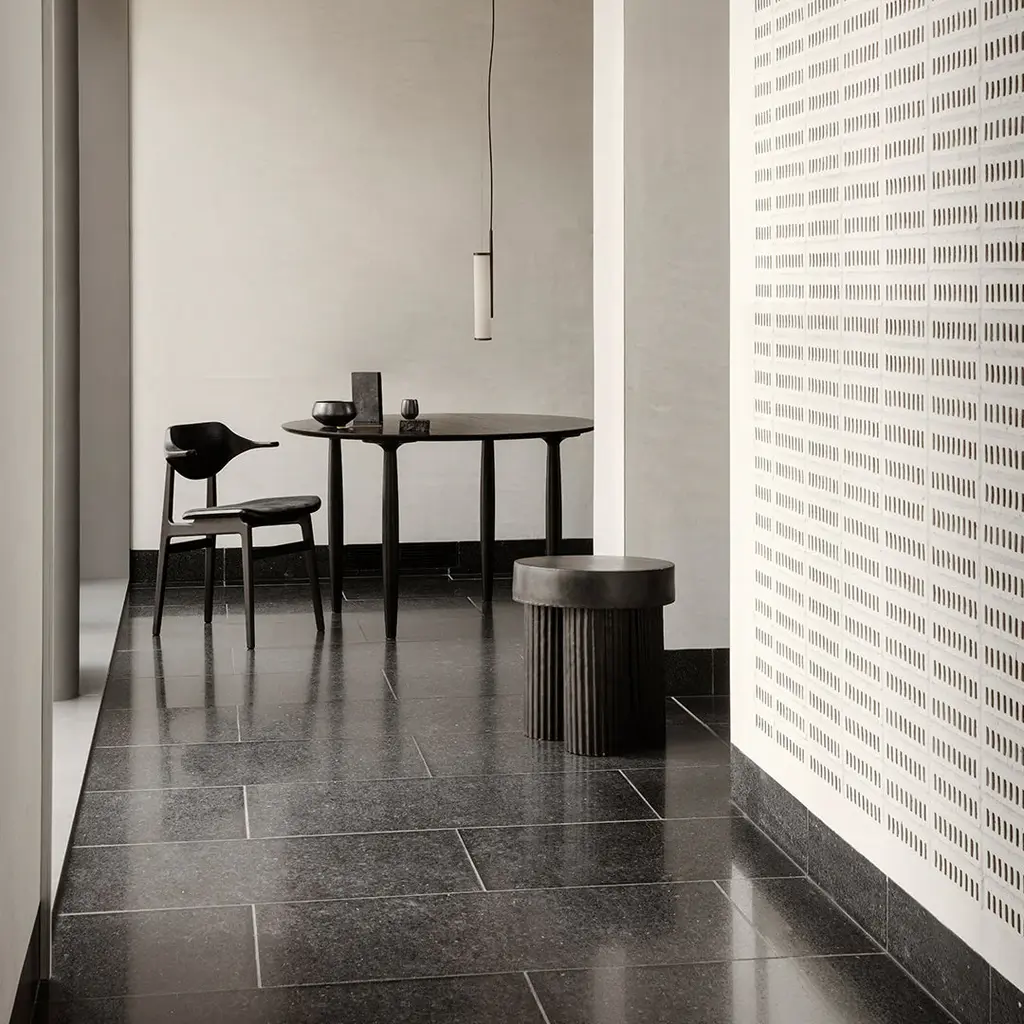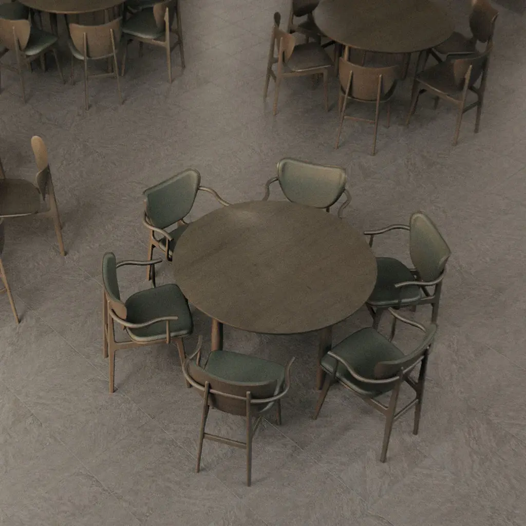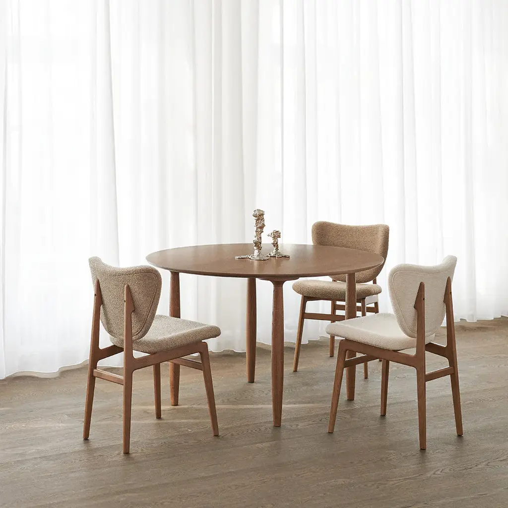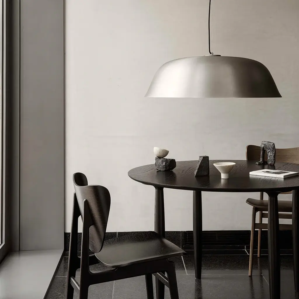 Oku is an interpretation of the Japanese word for oak ‘Ōku'. Oku refers to the essence of the design - oak. "Through experiments with the balance between lightness and heaviness, making it paper-thin when seen from one angle and solid from others, we've emphasised the material in a simple design." The Oku table top is produced in oak veneer with round edges, adding a refined detail to the large surface. The legs of turned oak timber sections are positioned sporadically to create the illusion of a floating tabletop while adding sculptural detail to the table. Oku comes in both rectangular and circular shapes. Available in several sizes, which makes it a well fit for every room.
