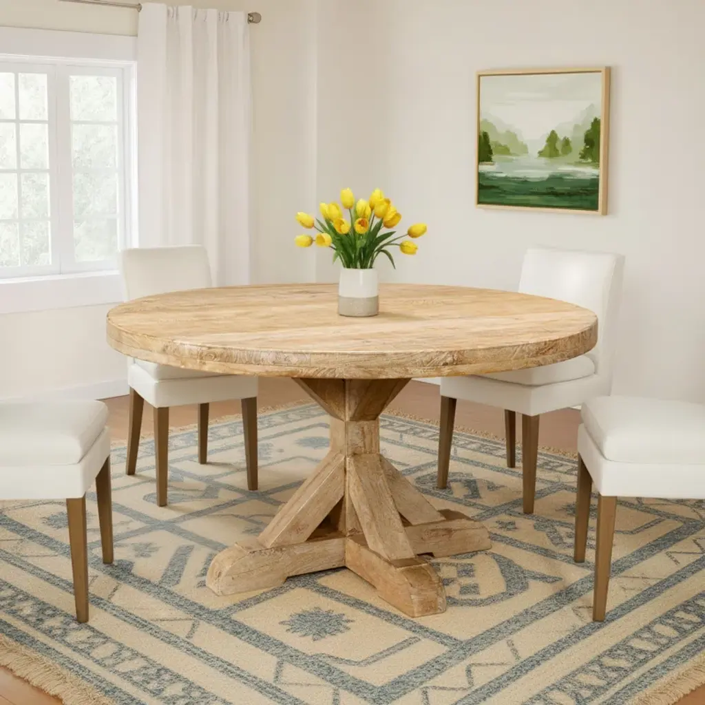 Featuring classic post-construction, the Oleski round dining table is perfect for a kitchen area or intimate dining area where the goal is conversation. The Sienna finish ensures decades of durability for those late-night conversations or an early morning coffee.