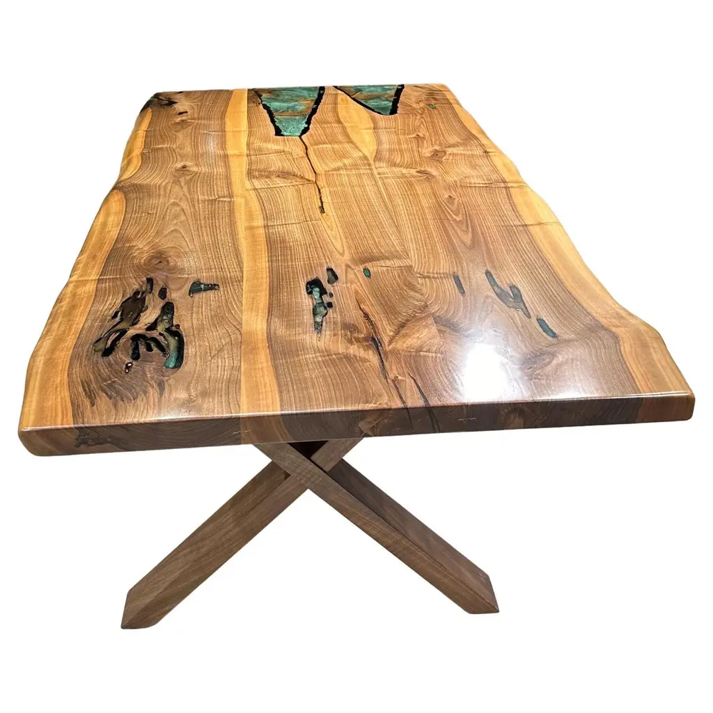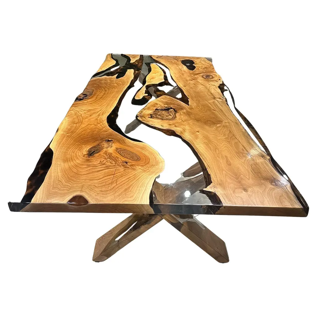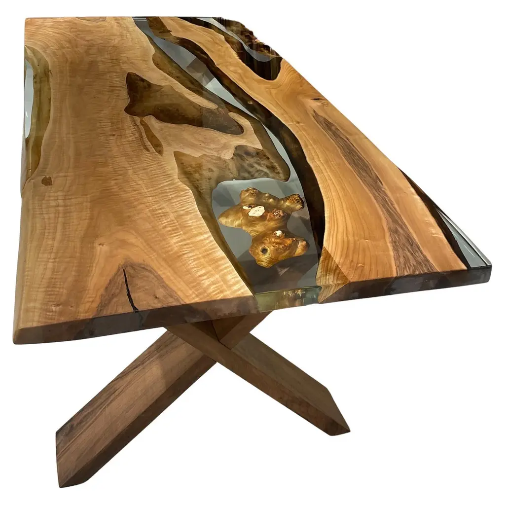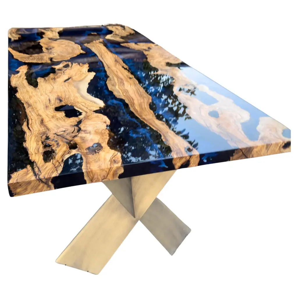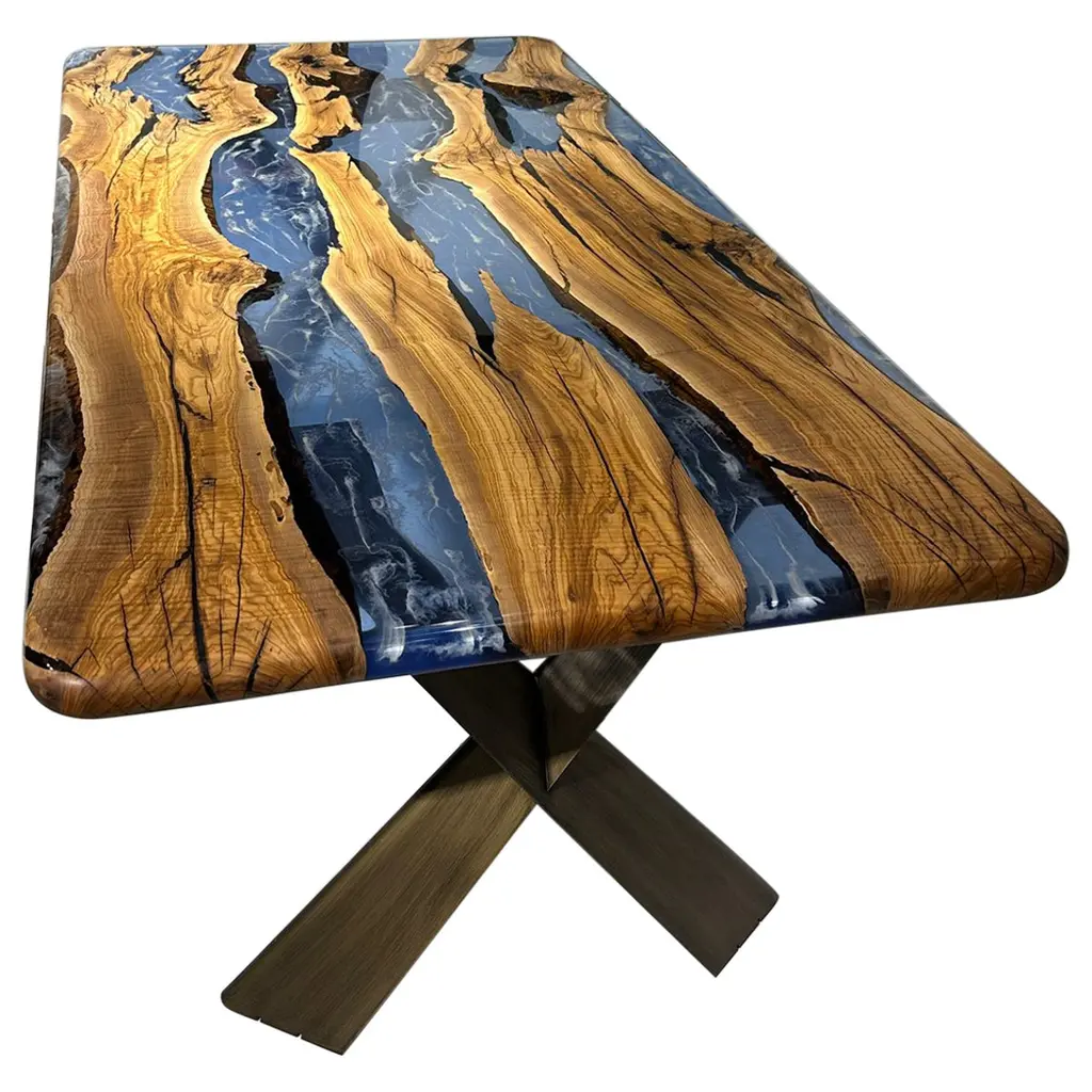 Olive Wood Epoxy Resin River Dining Table - Handmade Epoxy Live Edge Table