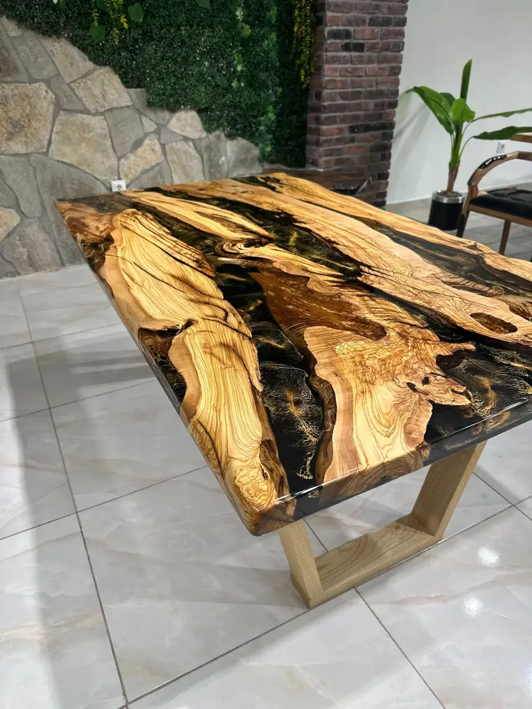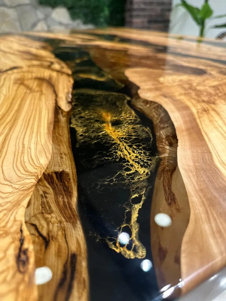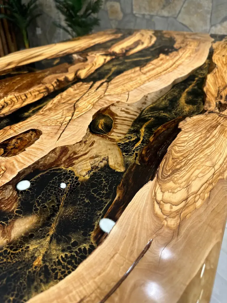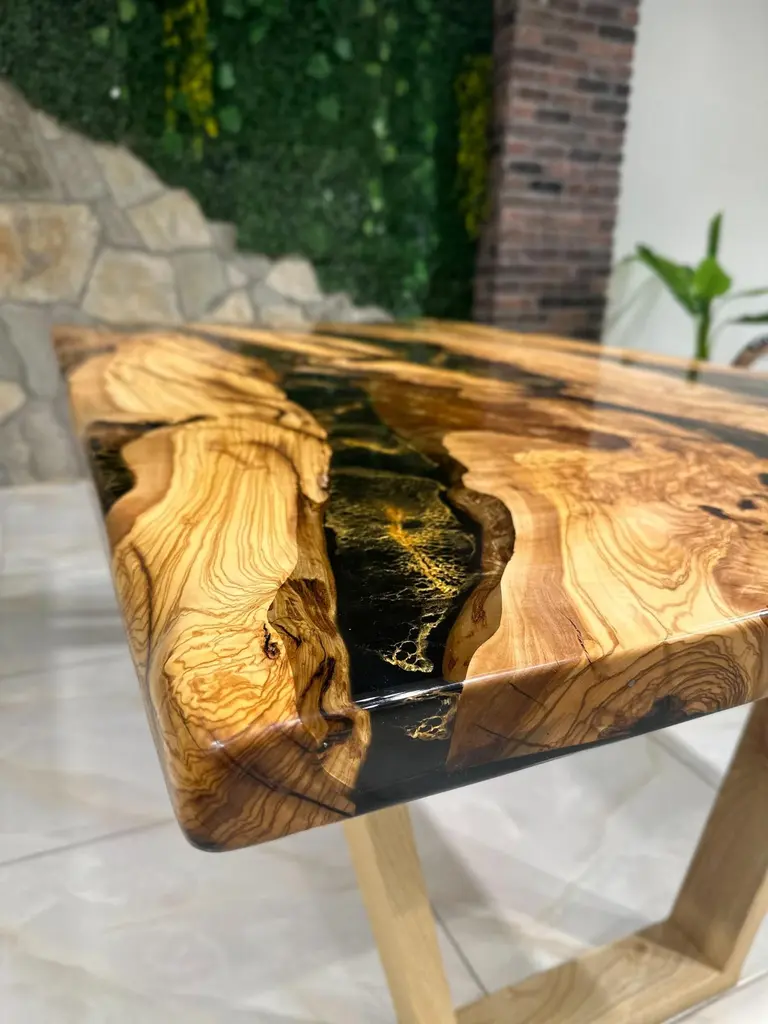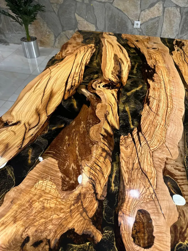 Olive Wood Live Edge Resin Table - Dining Custom Table - Kitchen Table