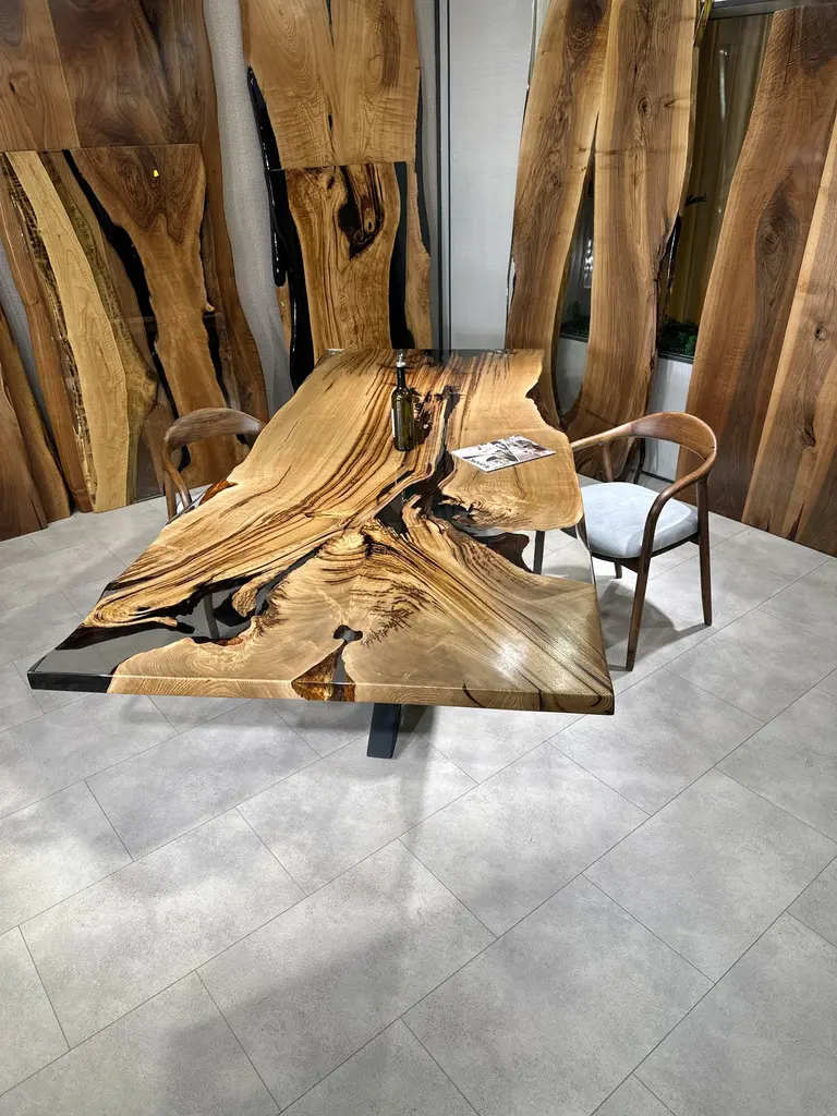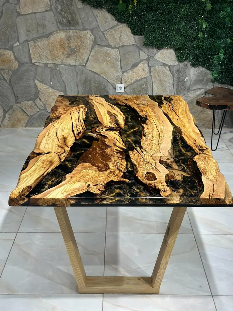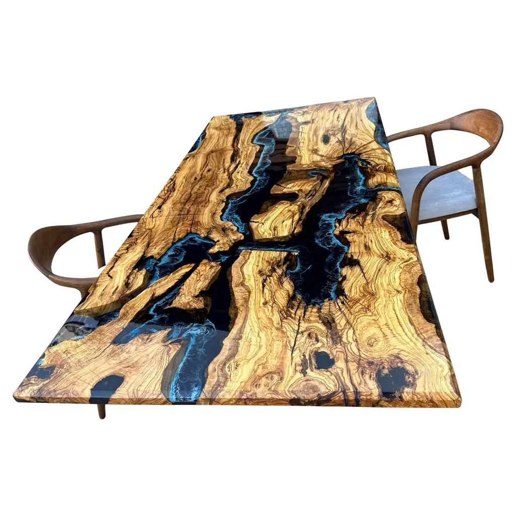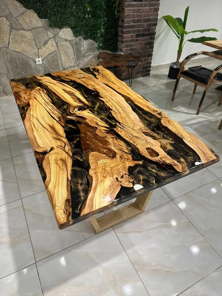 Olive Wood Live Edge Resin Table - Dining Custom Table - Kitchen Table