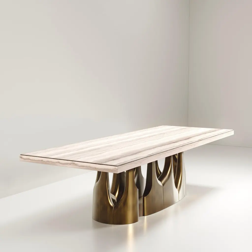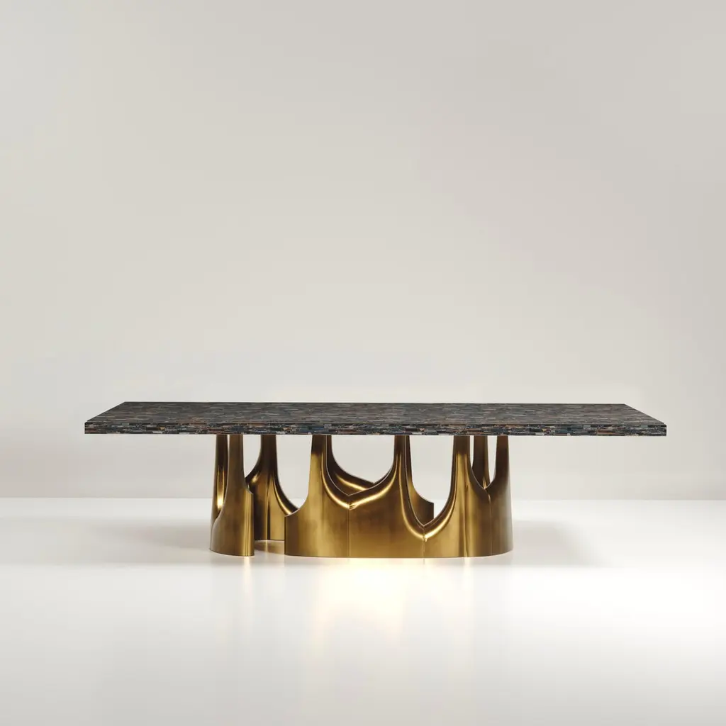 Onyx Dining Table With Bronze-Patina Brass Accents By R&y Augousti