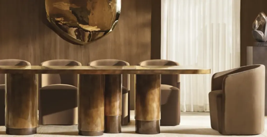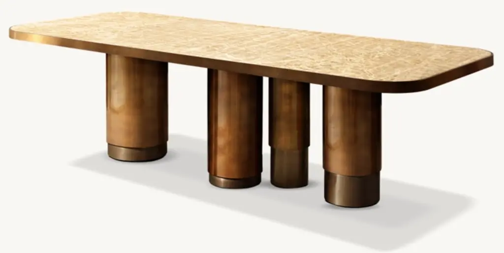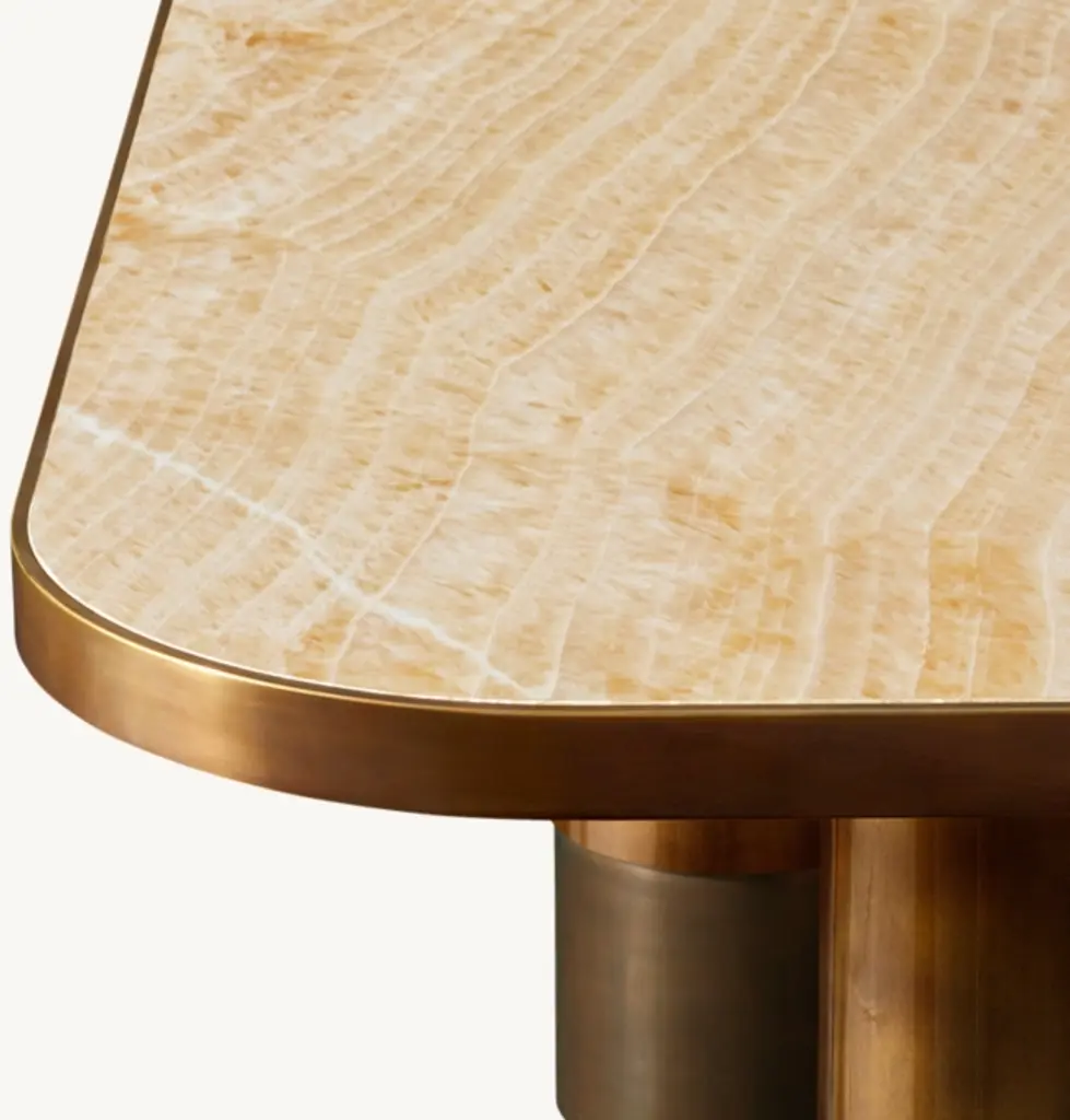 Crafted from rare onyx set in a solid brass frame, Onyx Tropez was inspired by a vintage table discovered in St. Tropez, France. The collection features asymmetric columns, finished by hand for an aged patina, and the distinctive pattern in each stone tabletop ensures every piece is unique.SHOP THE ENTIRE COLLECTION
