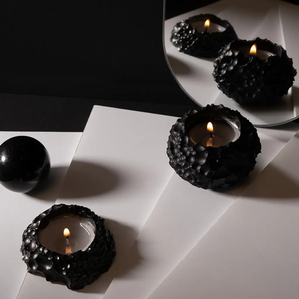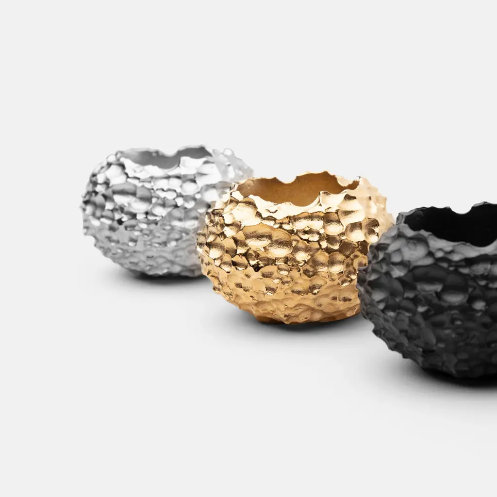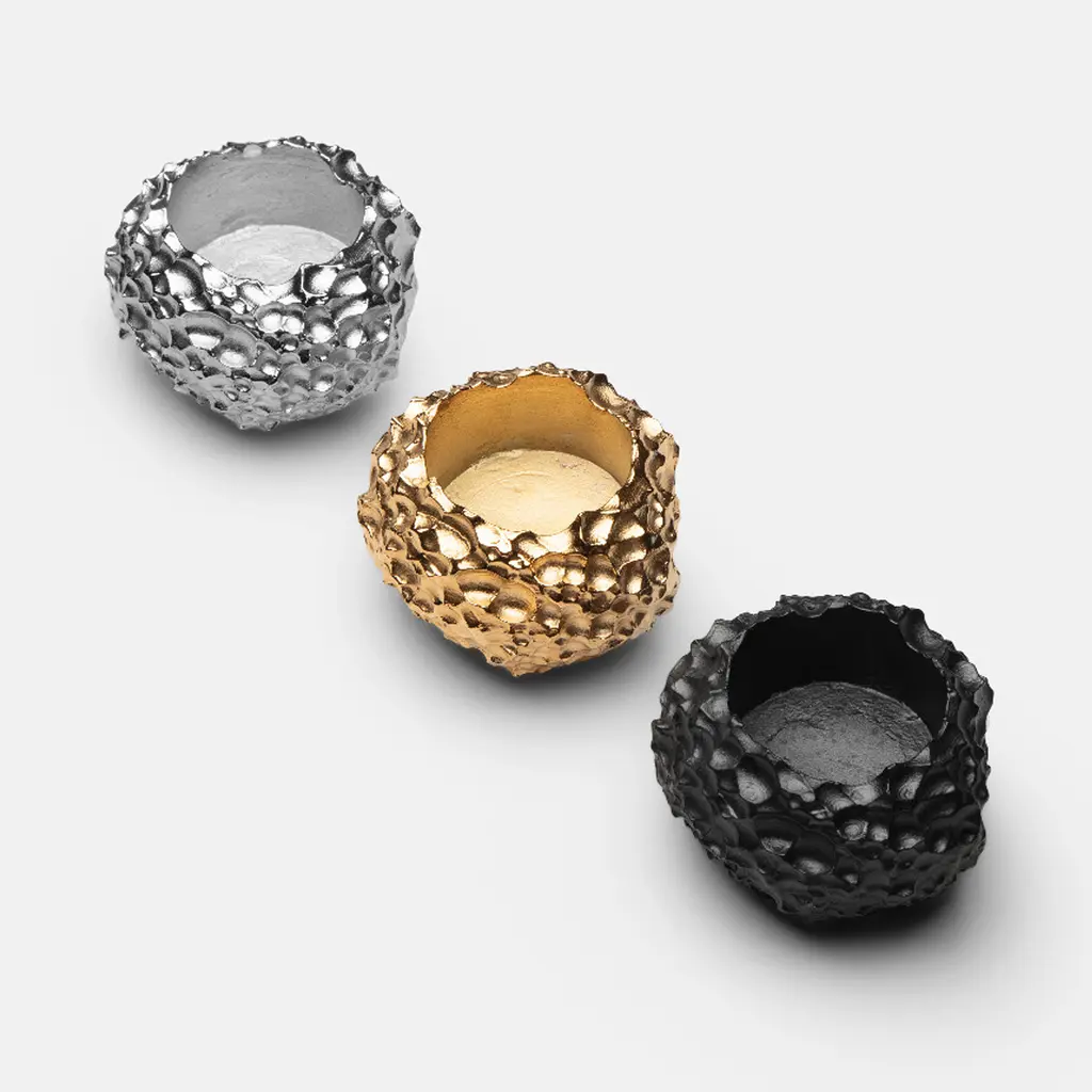 Outer space, the history of the Skultuna region, and the beauty of the henbane plant provided the inspiration for the Opaque Objects series. Designed by Martin Bergström, this tealight holder has an organic form and exceptionally tactile surface. Similarly to a meteor, this product has an irregular surface that makes it look like an object found in nature. To produce the collection, Swedish brand Skultuna converted the original molds into digital formats before casting the designs in steel or brass. The Opaque Objects Tealight comes in silver-plated high grade steel or polished brass. Specially made for standard tealights, this holder offers an easy way to add a creative touch to a dining table or any other living space.