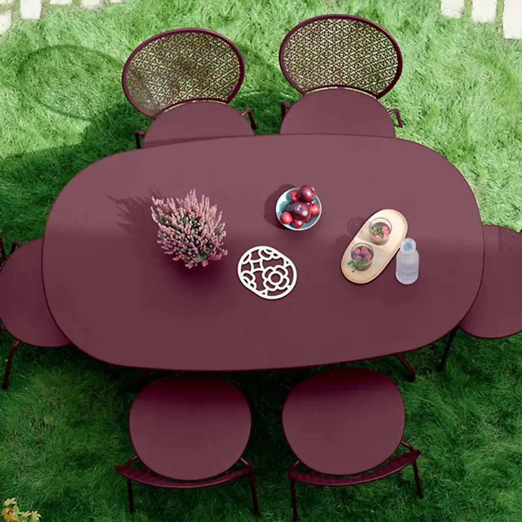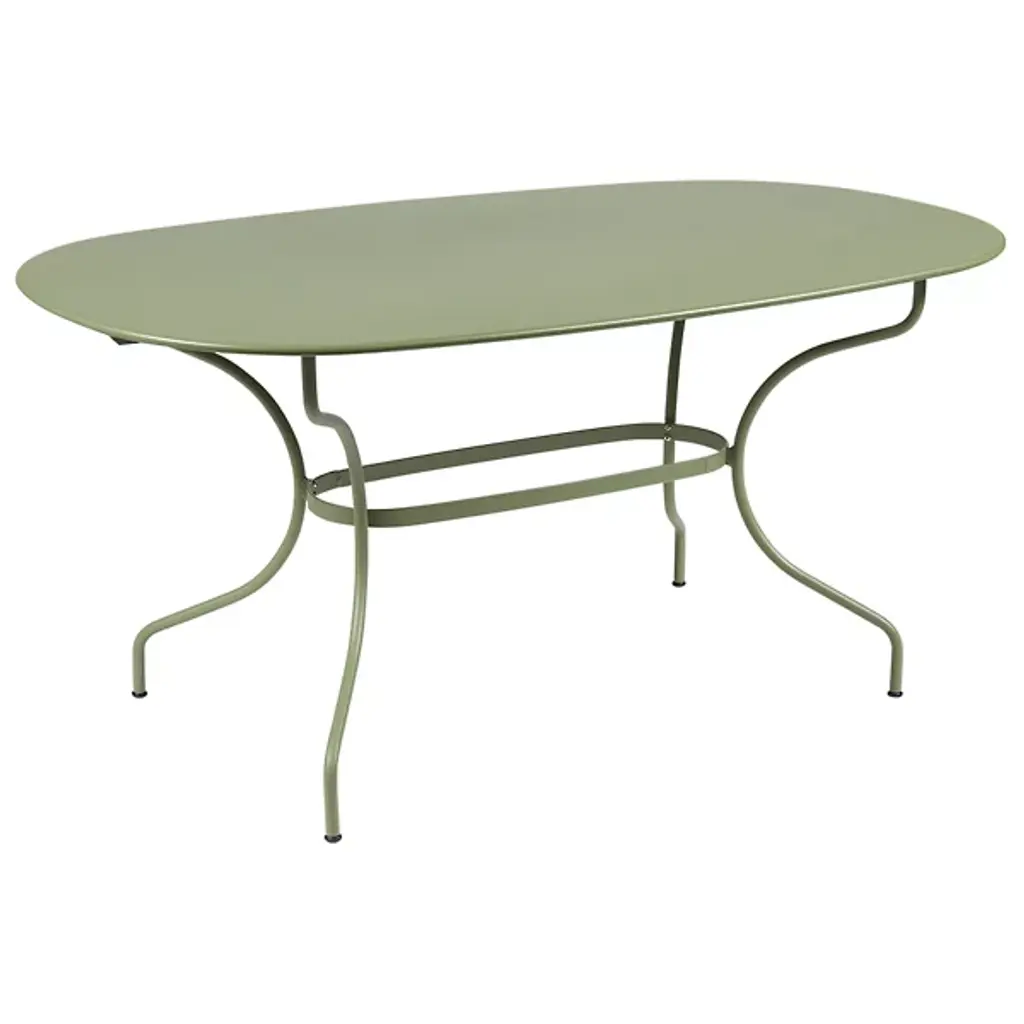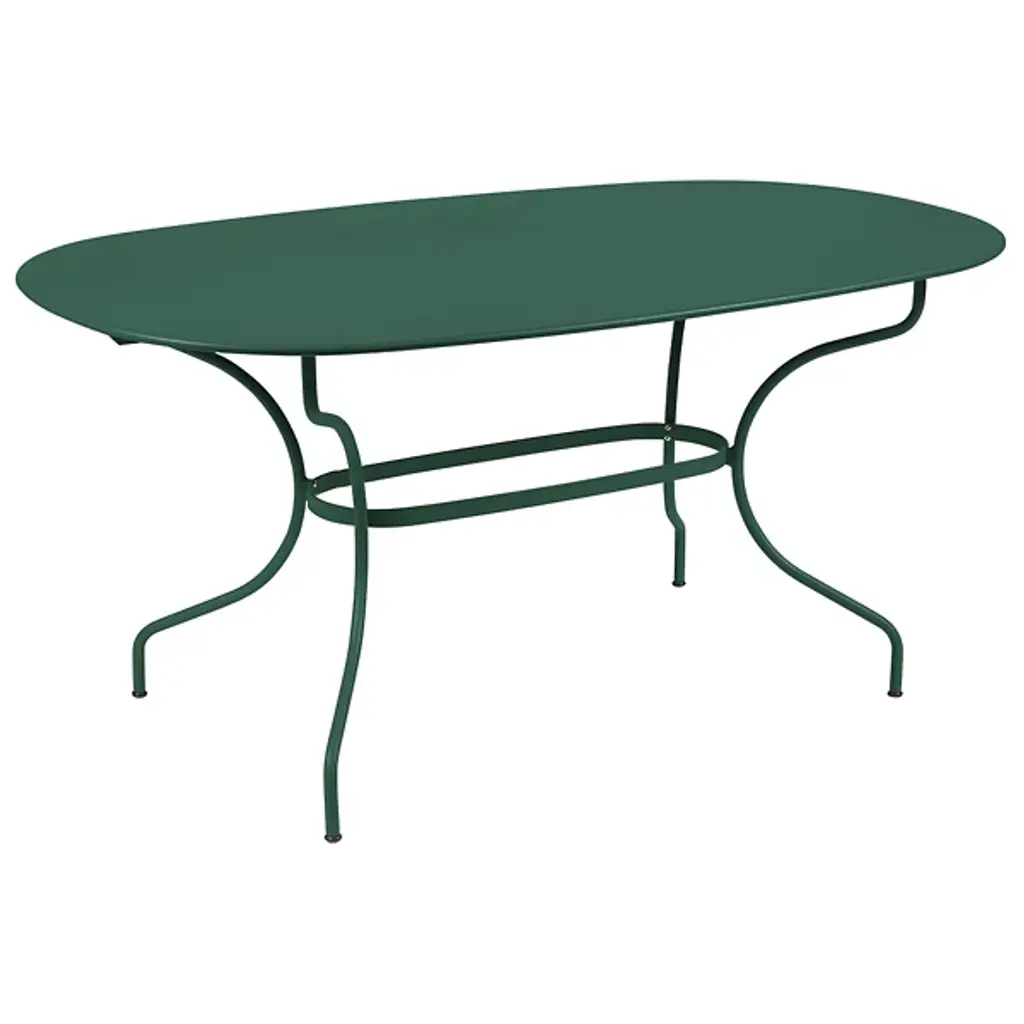 Sleek, sophisticated design for elegant outdoor dining spaces. With the Opera+ Oval Dining Table by Fermob, the plus refers to what’s been added to keep it strong and beautiful even with heavy outdoor use. It is made entirely of steel, with a thicker than normal steel sheet top and tubular steel legs. Fastening systems between the top and base and between the base and central steel band help to keep the whole dining table firmly connected and super-stable.