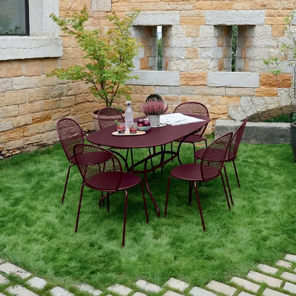 Sleek, sophisticated design for elegant outdoor dining spaces. With the Opera+ Oval Dining Table by Fermob, the plus refers to what’s been added to keep it strong and beautiful even with heavy outdoor use. It is made entirely of steel, with a thicker than normal steel sheet top and tubular steel legs. Fastening systems between the top and base and between the base and central steel band help to keep the whole dining table firmly connected and super-stable.