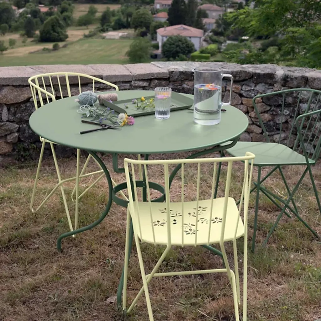 The perfect starting point for a stylish outdoor dining area. With the Opera+ Round Table by Fermob, you get a smooth look plus added strength. The round top is steel sheet supported by a tubular steel base; both components are made using materials that are thicker than standard. Then, specialty fastening systems are used between the top and base and between the base and steel belt support to keep the entire structure of this dining table super-stable, even with heavy use.