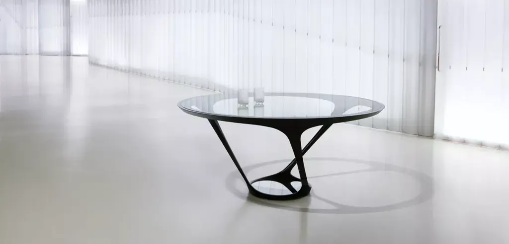 Ora Ito's creations are the result of his philosophy of 'simplexity': the art of giving an appearance of simplicity to a complex form. This table was born from the dual inspiration of plant and mechanical worlds. Whether resembling the branches of a vine or a UFO swirling in the air, it presents a constantly changing appearance from different angles and creates a majestic presence in the space.