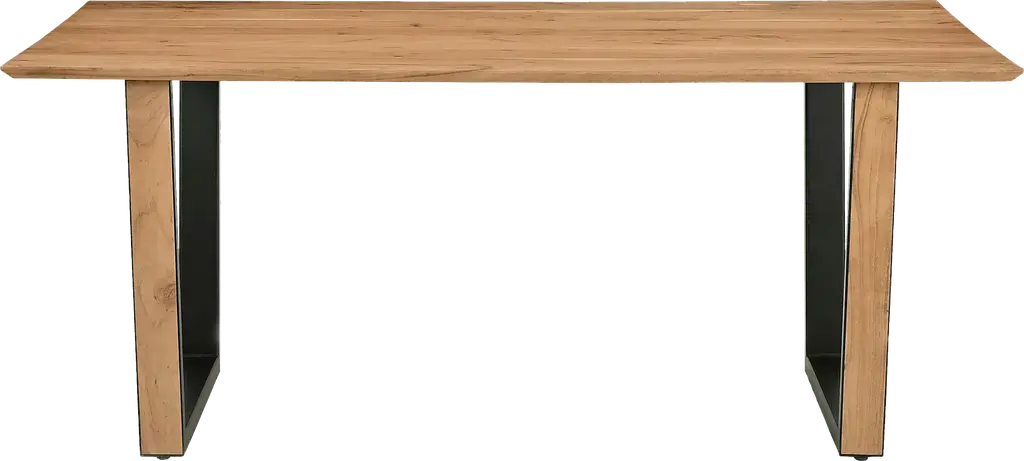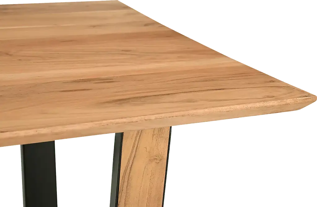 With the Orabella dining table, you'll be eager to invite friends and family over time and time again. The table top has been expertly crafted from solid Acacia wood and finished in a natural light tone that accentuates the intricate grain details. The U shaped legs offer a stunning contrast with natural wood finish on the exterior and a sleek black finish on the interior. When paired with the matching chairs, this set is sure to impress your guests. Customer assembly is required.
