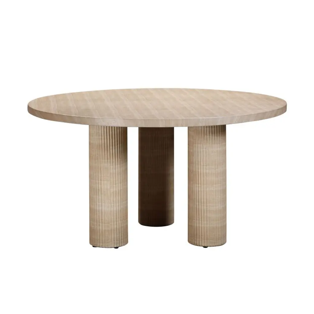 The Orbit Round Dining Table is designed for versatility, with a faux travertine texture that suits both indoor and outdoor settings. Its round shape promotes conversation and adds a stylish touch to any space.