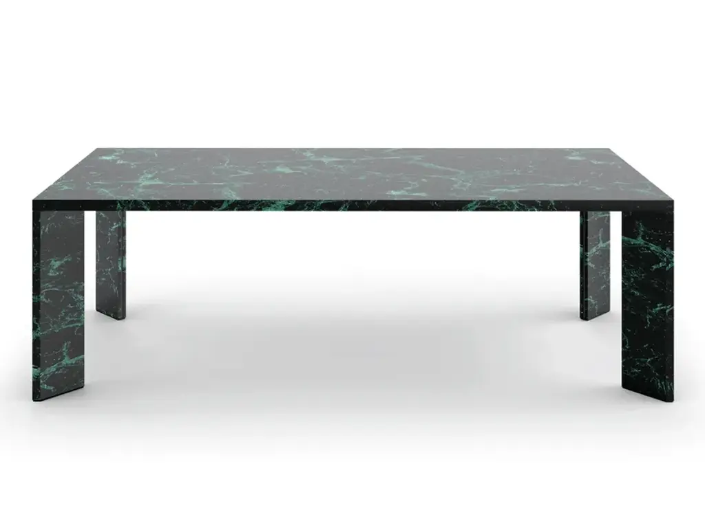 Cassina presents the Ordinal table for the dining area in oval, square, or rectangular versions, entirely made of marble. This mono-material table is available in Portoro Silver, Calacatta Oro, Verde Alpi, and Bianco Carrara, further enhancing the shape and value of this sculptural piece designed by Michael Anastassiades.The Ordinal tables are also available in Canaletto walnut, natural oak, or black-stained oak, with a wooden or lacquered top and black anodized aluminum legs.Materials:Top and legs in Portoro Silver, Calacatta Oro, Verde Alpi, and Bianco Carrara marble with a matte polyester finish.Top and legs in Canaletto walnut, natural oak, or black-stained oak.Lacquered top in petrol blue, black, comfort, marron glacé, sage green, midnight blue, China red, or amaranth red / legs in black anodized aluminum.