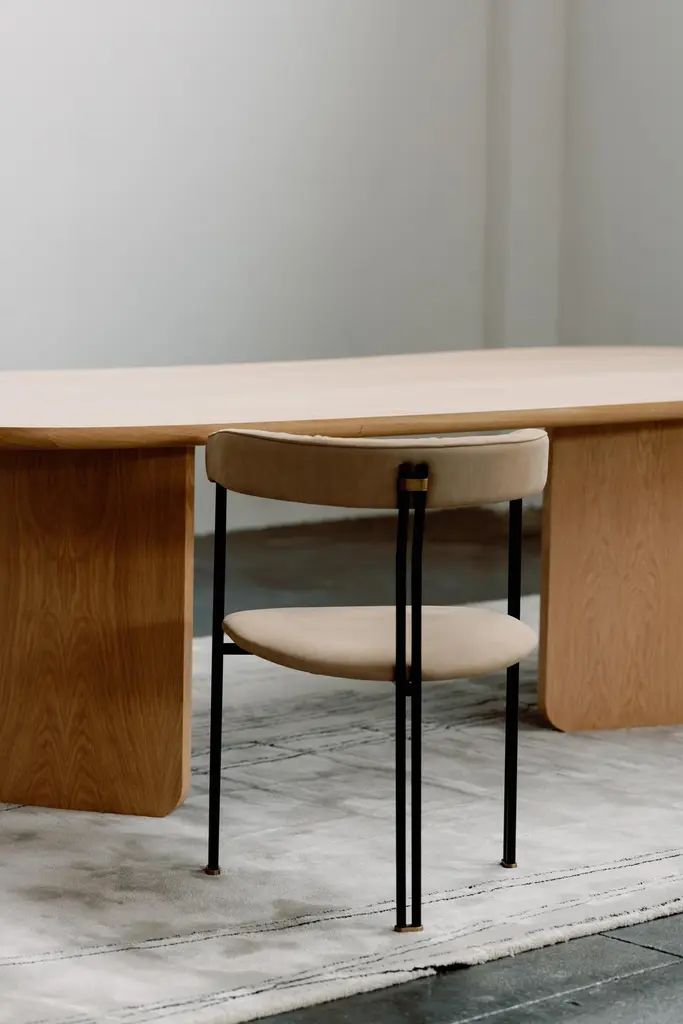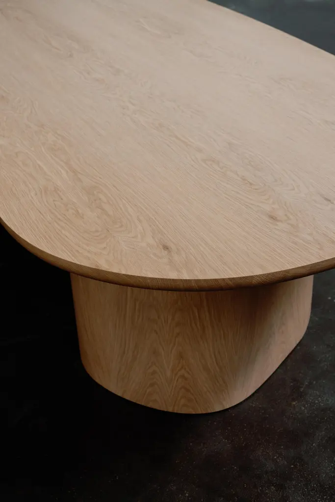 Organic Modern Armona Dining Table, Contemporary Collection, Handcrafted in Portugal - Europe by Greenapple.The Armona dining table draws inspiration from the serene landscape of Armona Island, embodying a sense organic beauty and effortless sophistication. Its flowing tabletop reflects the gentle curves of the coastline, creating a harmonious balance between nature and contemporary design. Meticulously crafted with precision and care, the Armona dining table stands as a statement of refined artistry, destined to be the heart of any dining space.The Armona dining table features a bean-shaped top in natural white American oak veneer, finished with an open-pore and a matte varnish. The top is supported by two semicircular bases, with the outer shell in matching natural white American oak veneer and the inner shell in American oak veneer stained in dark brown, both with an open-pore and a matte varnish.The veneer is anti-fungal and vermin-free, ensuring durability and preservation.The Armona dining table can be customized in terms of dimensions, materials and finishes. Armona 10-Seat Dining Table Material CodesWD027 American Oak, Stained Open-pore, Varnished, Natural White Oak, MatteWD026 American Oak, Stained Open-pore, Varnished, Dark Brown, MatteHandcrafted in Portugal - Europe by GreenappleUnique by design, Crafted by peopleGreenapple transforms contemporary spaces into exclusive narratives of design and craftsmanship. From custom-made furniture to bespoke interiors, each creation is a timeless work of art, shaped by master artisans who honor centuries-old techniques.Founded in 2005 by Sérgio Rebola and Rute Martins, Greenapple has earned global recognition among high-end clientele and leading design firms. While Rute designs each unique piece, Sérgio ensures uncompromising quality from design to production and from production to your home. We provide a seamless experience, offering short production lead times, worldwide delivery within 7 to 10 days, and white-glove service upon request.For U.S. clients, we can handle all customs clearance, cover duties, and offer white-glove service as well upon request.Table
