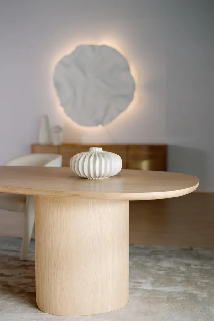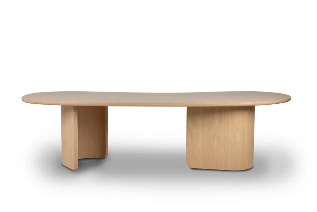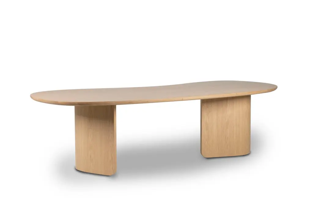 Organic Modern Armona Dining Table, Contemporary Collection, Handcrafted in Portugal - Europe by Greenapple.The Armona dining table draws inspiration from the serene landscape of Armona Island, embodying a sense organic beauty and effortless sophistication. Its flowing tabletop reflects the gentle curves of the coastline, creating a harmonious balance between nature and contemporary design. Meticulously crafted with precision and care, the Armona dining table stands as a statement of refined artistry, destined to be the heart of any dining space.The Armona dining table features a bean-shaped top supported by two semicircular bases, all crafted from natural white American oak veneer, finished with an open-pore and a matte varnish.The veneer is anti-fungal and vermin-free, ensuring durability and preservation.The Armona dining table can be customized in terms of dimensions, materials and finishes. Armona 10-Seat Dining Table Material CodesWD027 American Oak, Stained Open-pore, Varnished, Natural White Oak, MatteHandcrafted in Portugal - Europe by GreenappleUnique by design, Crafted by peopleGreenapple transforms contemporary spaces into exclusive narratives of design and craftsmanship. From custom-made furniture to bespoke interiors, each creation is a timeless work of art, shaped by master artisans who honor centuries-old techniques.Founded in 2005 by Sérgio Rebola and Rute Martins, Greenapple has earned global recognition among high-end clientele and leading design firms. While Rute designs each unique piece, Sérgio ensures uncompromising quality from design to production and from production to your home. We provide a seamless experience, offering short production lead times, worldwide delivery within 7 to 10 days, and white-glove service upon request.For U.S. clients, we can handle all customs clearance, cover duties, and offer white-glove service as well upon request.Table