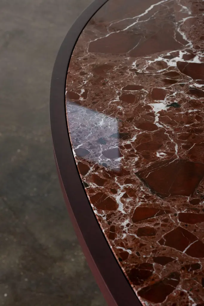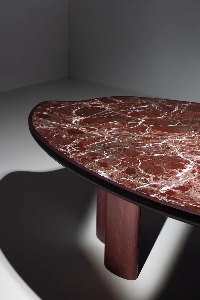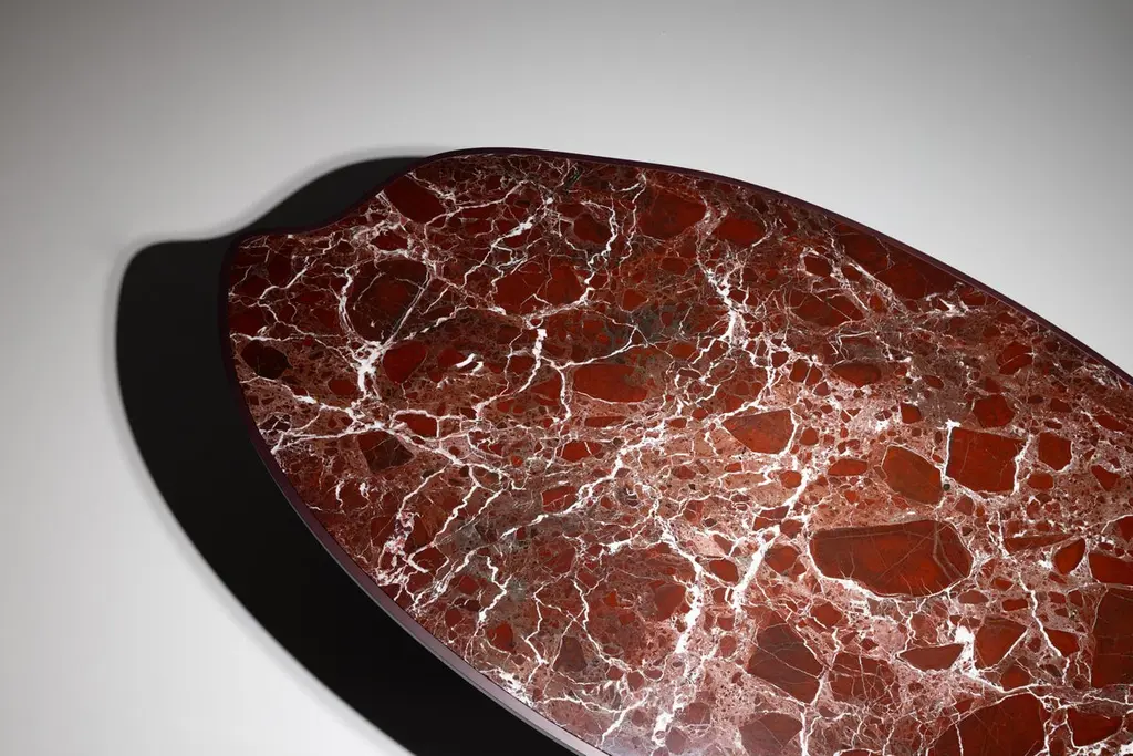 Organic Modern Cerdeira Dining Table, Rosso Levanto Marble, Handmade Greenapple