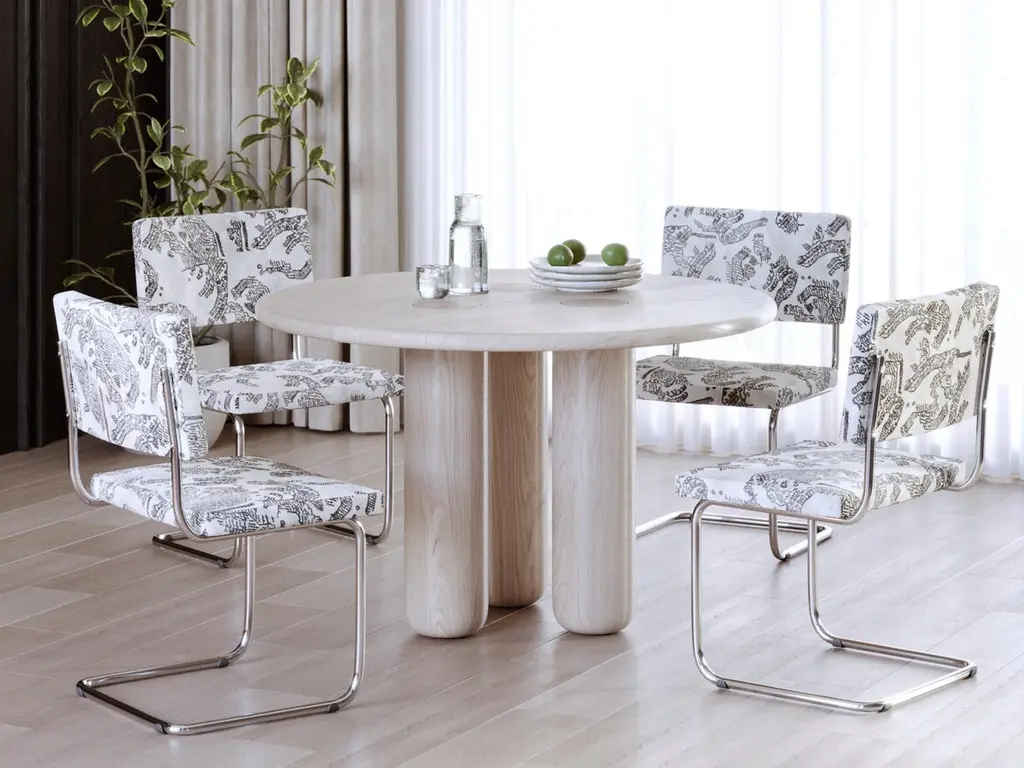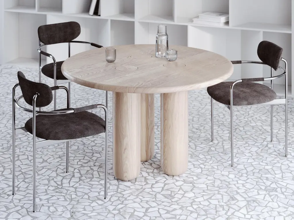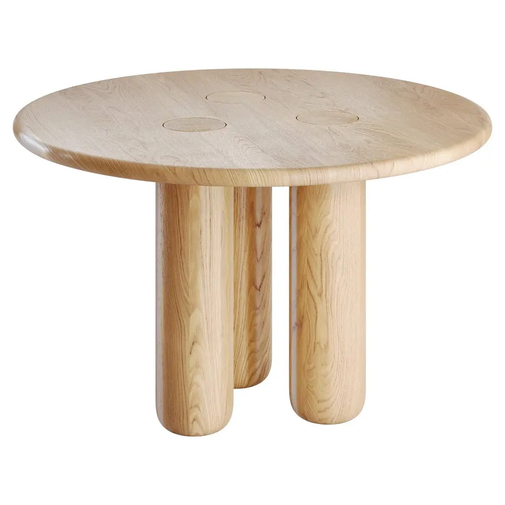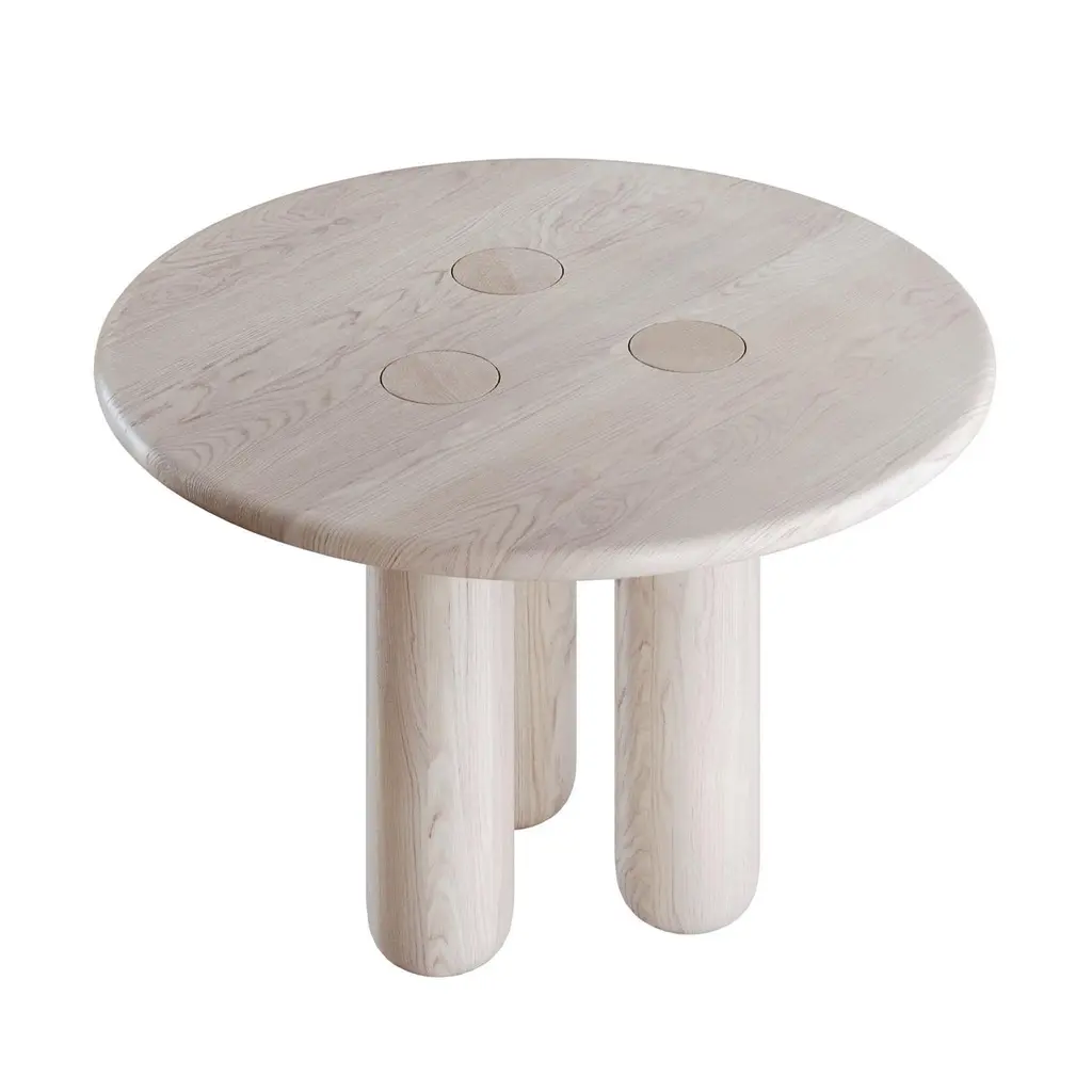 This dining table is crafted from solid oak with a refined whitewashed finish that softens the natural grain and gives the piece a fresh, contemporary character. Designed in an organic modern style, it features flowing lines and rounded forms that evoke the natural geometry of wood shaped by time. The round tabletop symbolizes harmony and continuity, while the cylindrical legs add sculptural depth and architectural presence. Minimalist yet expressive, this table stands as both functional furniture and an artistic statement, making it a striking centerpiece in modern interiors. Perfectly suited for loft, Scandinavian, and minimalist aesthetics, it blends durability with elegance. Each table is handcrafted by VulpeConcept artisans, who unite traditional woodworking skills with a contemporary organic vision, creating furniture that is timeless, unique, and truly connected to nature.Tags:#OrganicModern #SolidOak #WhitewashedOak #RoundDiningTable #OrganicDesign #ContemporaryFurniture #SculpturalFurniture #VulpeConcept #Handcrafted #ModernInteriors #MinimalistDesign #ScandinavianStyle #LoftInterior #StatementFurniture #UniqueFurniture #LuxuryLiving #ArtisanMade #ModernDining #TimelessDesign #OrganicForms