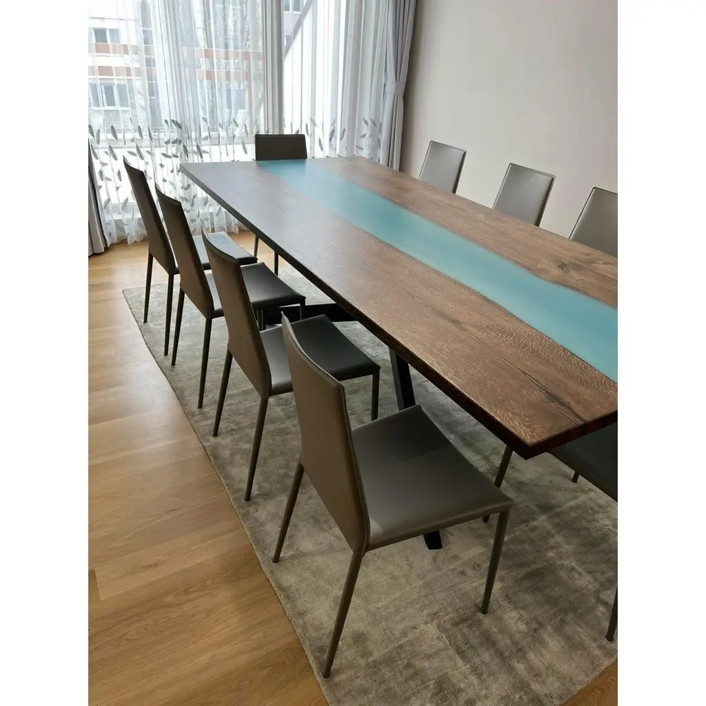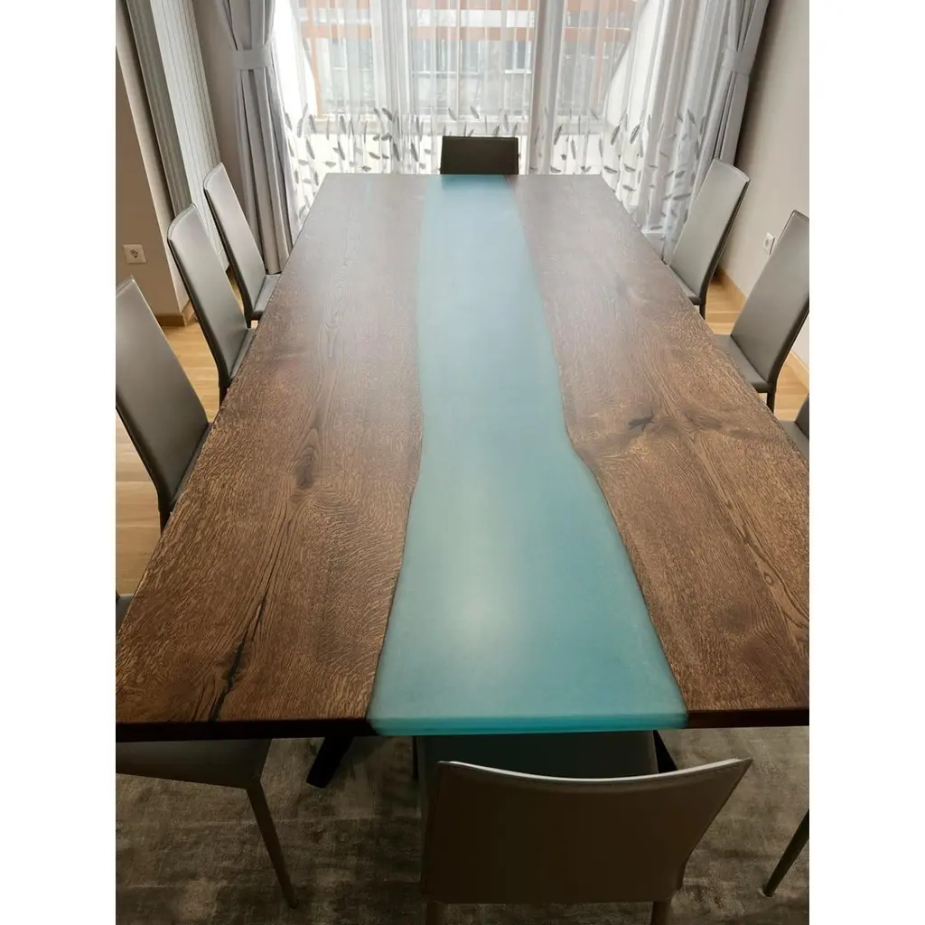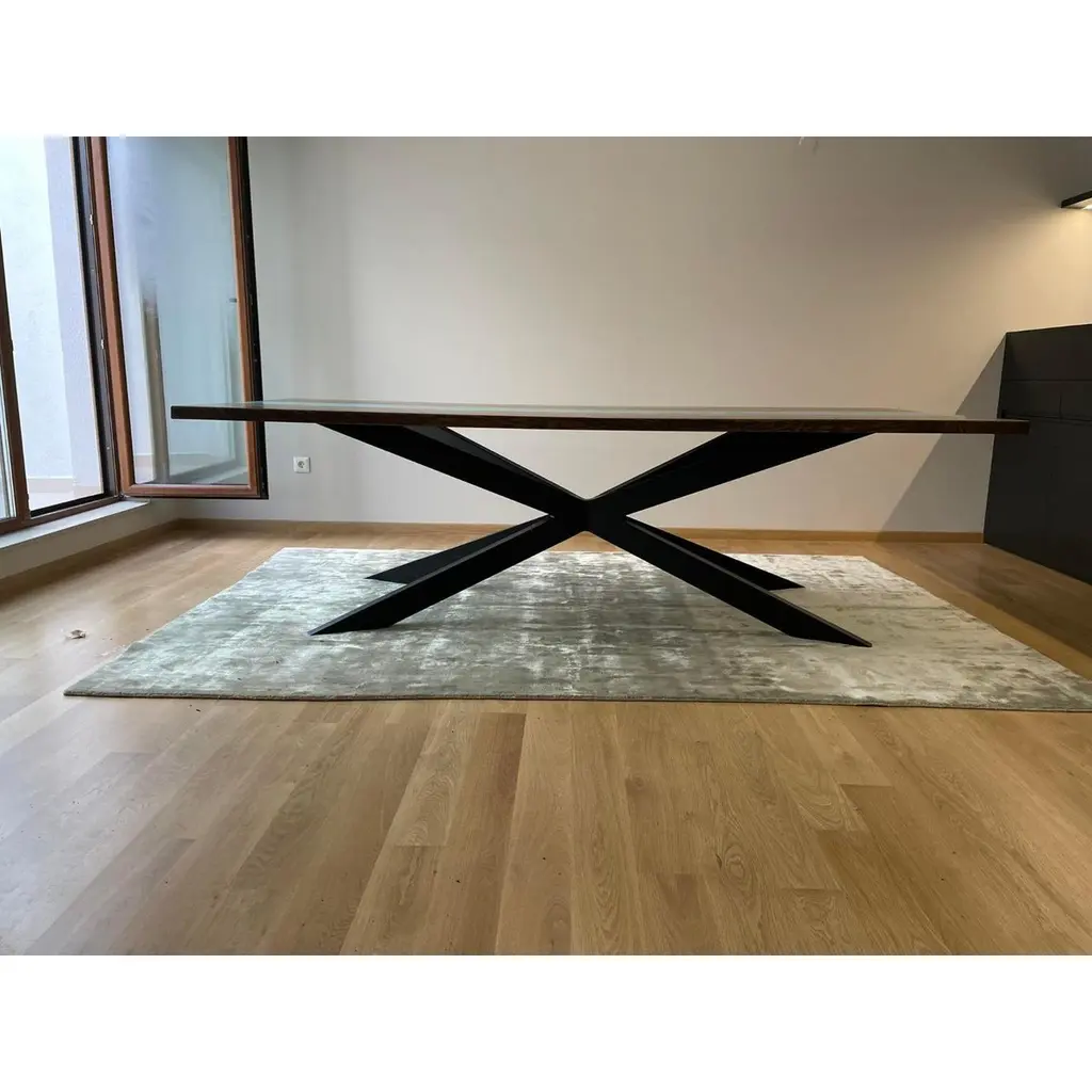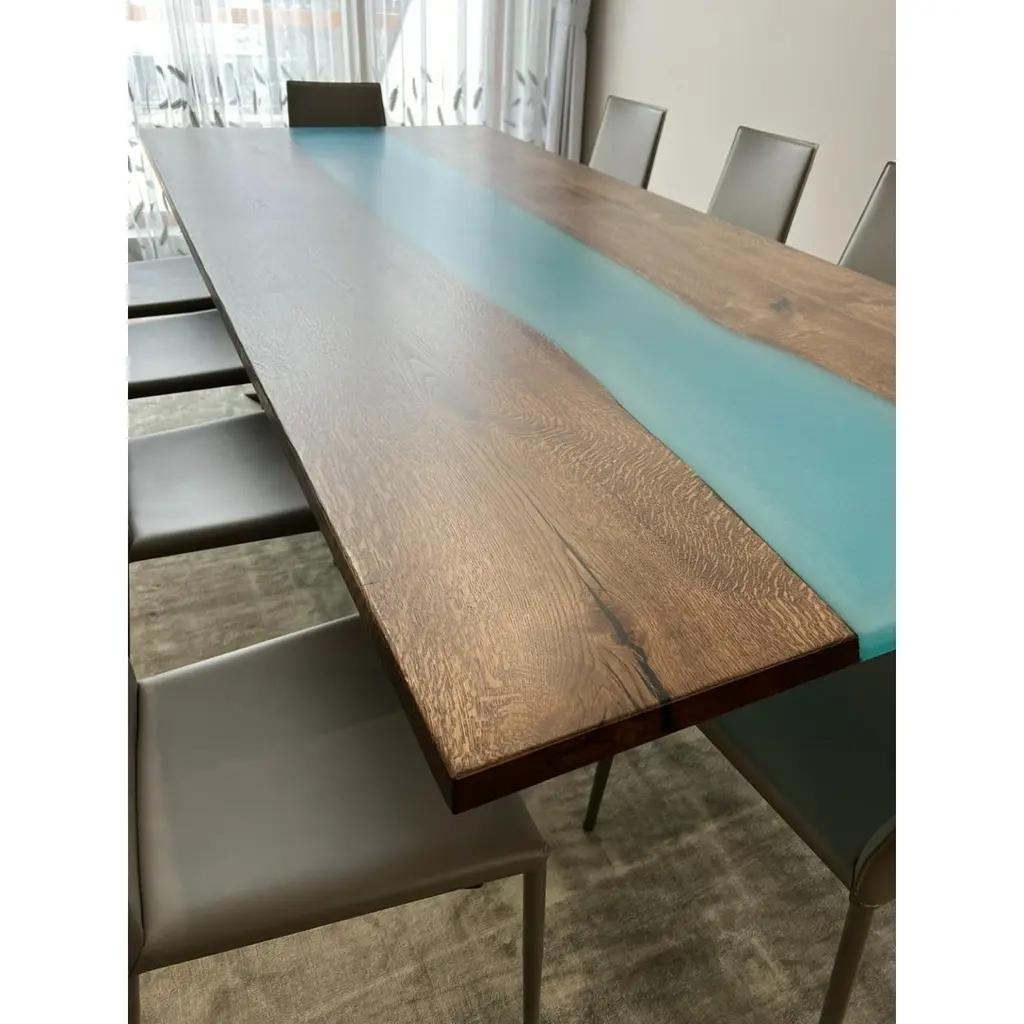 Orion Dining Table by KV DesignOne Of A KindDimensions: D 120 x W 260 x H 77 cm.Materials: European oak, metal, and epoxy.Everything is custom-made 1 of 1 edition. Please contact us.The dining table is an essential part of your home interiorAs we celebrate, share special moments with family members and friends.This is why we believe it is essential to create not only a strong and durable dining table but for it to also be warm and create a comforting environment. Our aim at KV Is to accentuate these exact feelings.The main feature of our dining table is not just the Solid wood but the combination of the aforementioned with epoxy resin, which fits it immaculately.KV Design is a team of professionals, and we believe that our custom-made furniture is not simply part of the interior design. We use high-quality wood and epoxy resin in the production of unique state-of-the-art products. Our ideology is that our tables are not solely to be used for their main purpose, but also to be observed and enjoyed as a piece of art. Hence, we combine functionality and elegance into the creation of a captivating and complex product. For the production of our furniture, we strive to select the highest quality materials from leading brands on the market. We invest endless hours of manual labor in the making of every single element part of our furniture. However, everyorder is strictly delivered within no more than 4 weeks.