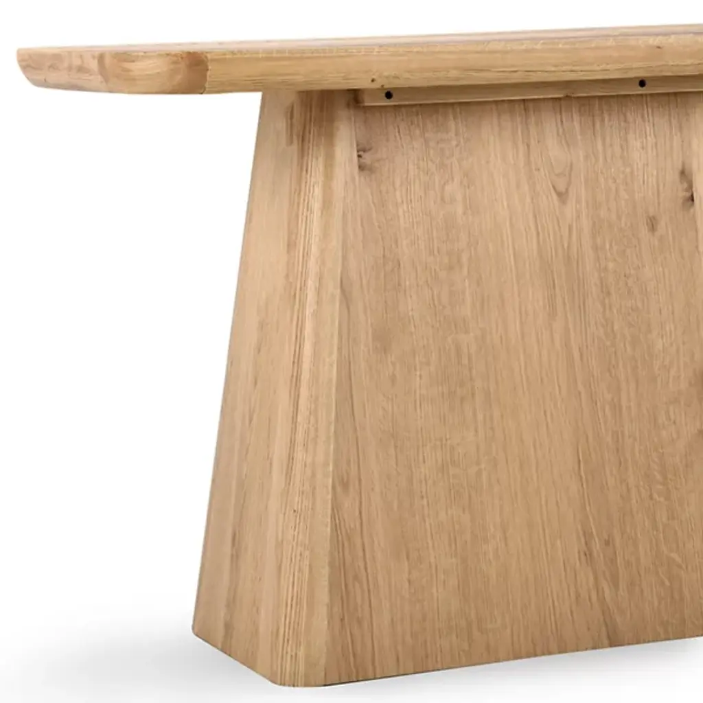 The Orlando Console Table from Classic Home combines a bold silhouette with a dynamic grain pattern, bringing lasting beauty and a strong presence to any room. Its minimalist pedestal design offers a sleek and stable foundation, while the thoughtfully applied finish highlights the natural variations inherent in the oak wood. Perfect for displaying decor or providing functional storage, this console table adds timeless elegance to entryways, living spaces, or dining areas, effortlessly complementing a variety of styles.