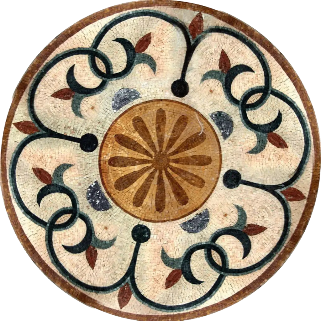 Introducing the Ornamental Floral Medallion - Nalini Mosaic, a breathtaking piece that seamlessly combines art and functionality to elevate your space. This exquisite mosaic serves as a vibrant focal point for your walls and decorative tile floors, infusing your home with a touch of elegance and charm. At the heart of the design is a striking center fan motif that captivates the eye. It features a rich palette of deep reds and burgundies, which beautifully harmonizes with delicate red and yellow flowers that appear to burst forth from intricately designed decorative urns. This ornate floral arrangement not only draws attention but also exudes a sense of warmth and sophistication.Crafted with meticulous attention to detail, the Nalini Mosaic is perfect for a variety of applications. Whether you envision it as a stunning piece of wall art or as a decorative inlay for your tabletop or countertop, this medallion enhances both traditional and contemporary interiors. Its versatility makes it an ideal choice for living rooms, dining areas, entryways, or even as a captivating kitchen centerpiece.Available in both standard and custom sizes, the Ornamental Floral Medallion can be tailored to fit your specific needs, ensuring that it complements your décor perfectly. Its high-quality craftsmanship guarantees durability and longevity, allowing you to cherish this beautiful piece for years to come.Transform your space with the Ornamental Floral Medallion - Nalini Mosaic, where artistic beauty meets functional design, making every glance a celebration of style and elegance.