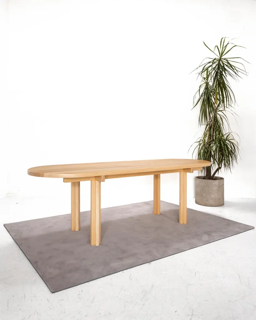 Orno dining table by RiesDimensions: W220 x D80 x H73 cm Materials: HardwoodTransparent matte lacquer, color matte lacquer (Finishings)Ries is a design studio based in Buenos Aires, Argentina, focused on product and conemporary furniture design. The studio’s approach to design is influenced by it’s members mixed background in architecture and industrial design, who through a shared vision, combine different materials with production processes rooted in craft and insdustry to create pieces that seek to elevate the experience of the everyday life. Being actively involved in the making of their pieces allows them to have alternative readings of standarized production processes that embrace both success and failure as an outcome and therefore, their pieces are imprinted with those stories. The studio was founded in 2016 and is directed by Marcos Altgelt and Tasio Picollo.