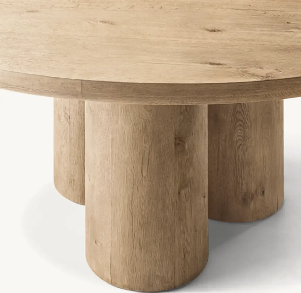Oslo by Harrison and Nicholas Condos is inspired by the simplicity of organic midcentury design. Defined by a sculptural grouping of cylindrical supports, the tables are meticulously handcrafted of wire-brushed American white oak. A high-heat finishing process creates distinctive cracking, further enhancing the wood's rich texture and unique grain patterning – an elegant juxtaposition of rustic and relaxed, minimalist and refined. SHOP THE ENTIRE COLLECTION