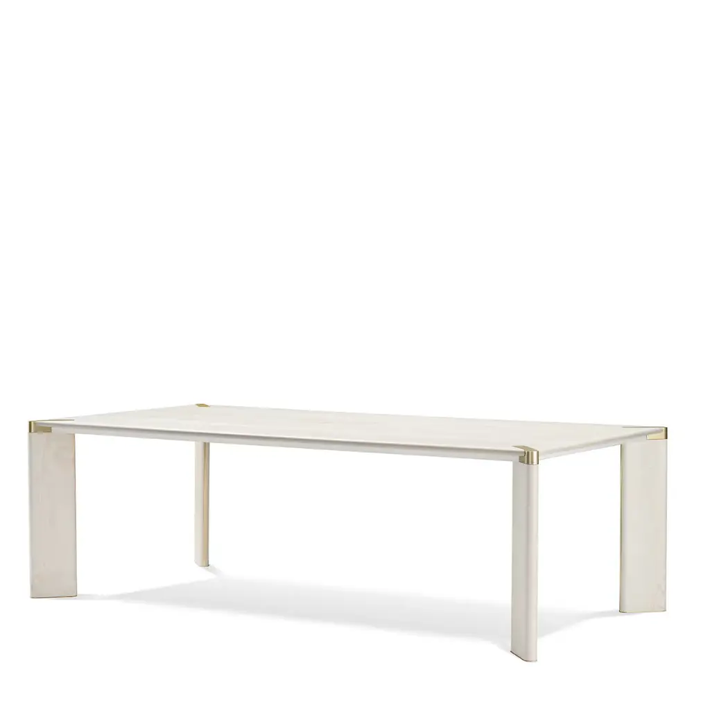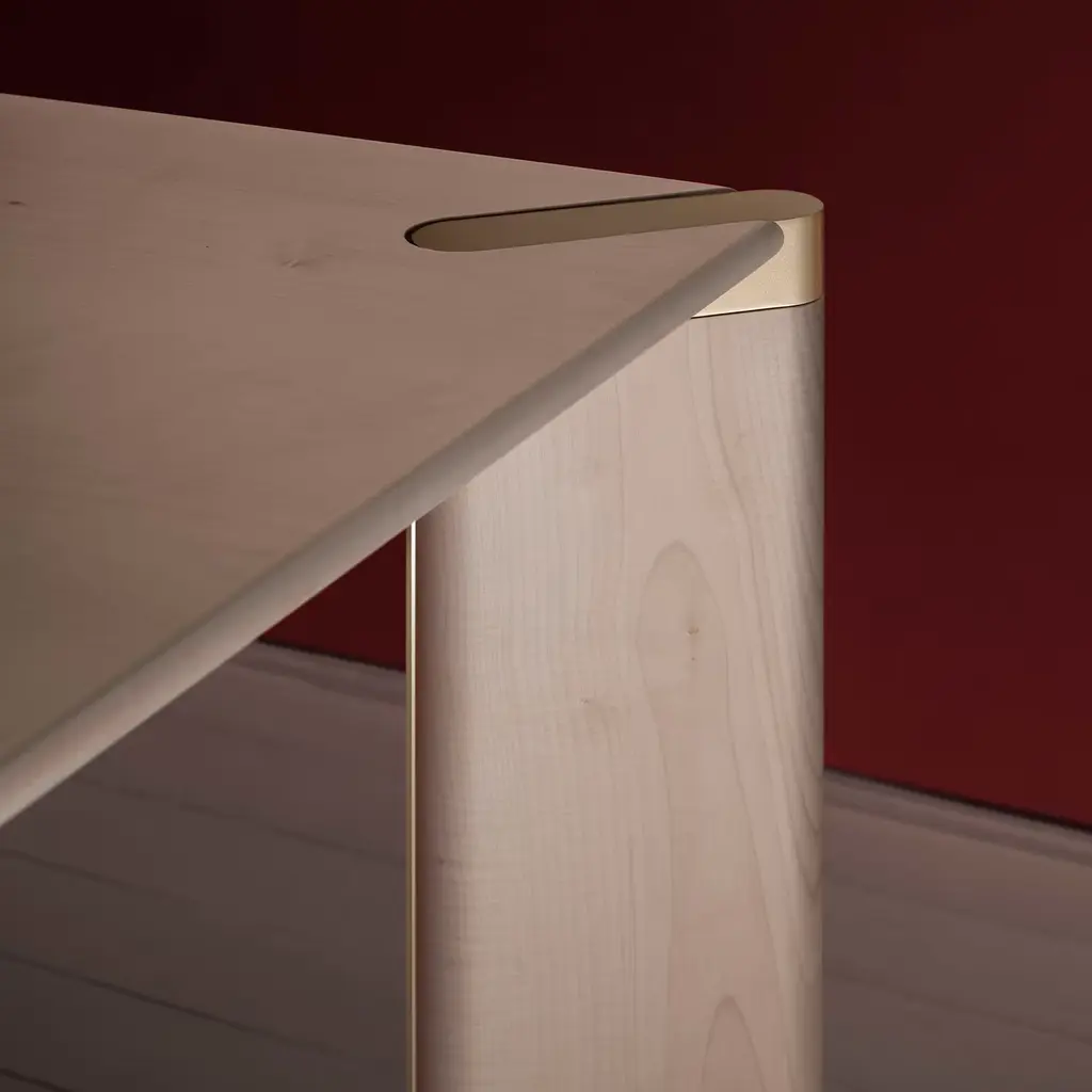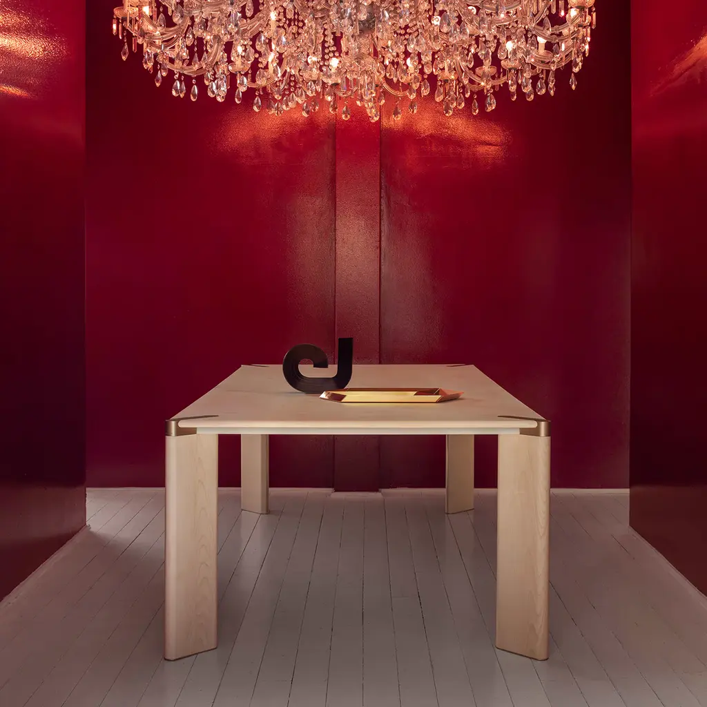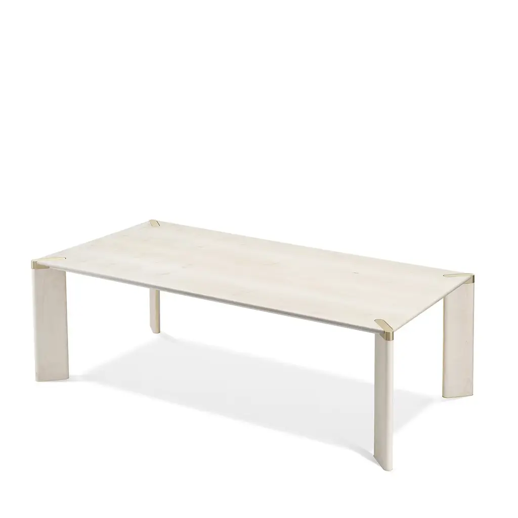 Stylish satin brass details enrich this elegant dining table of modern inspiration. Designed by Lorenza Bozzoli for the Ottanta Collection, it makes for a superb, luminous accent to dining rooms welcoming family and friends around is made of white maple with satin brass joints.